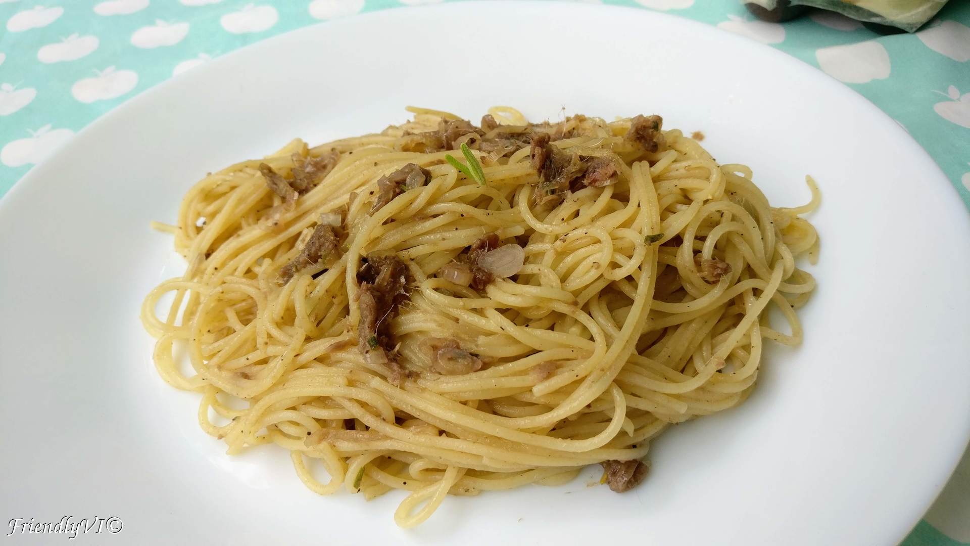 2. Spaghetti with canned anchovies and rosemary