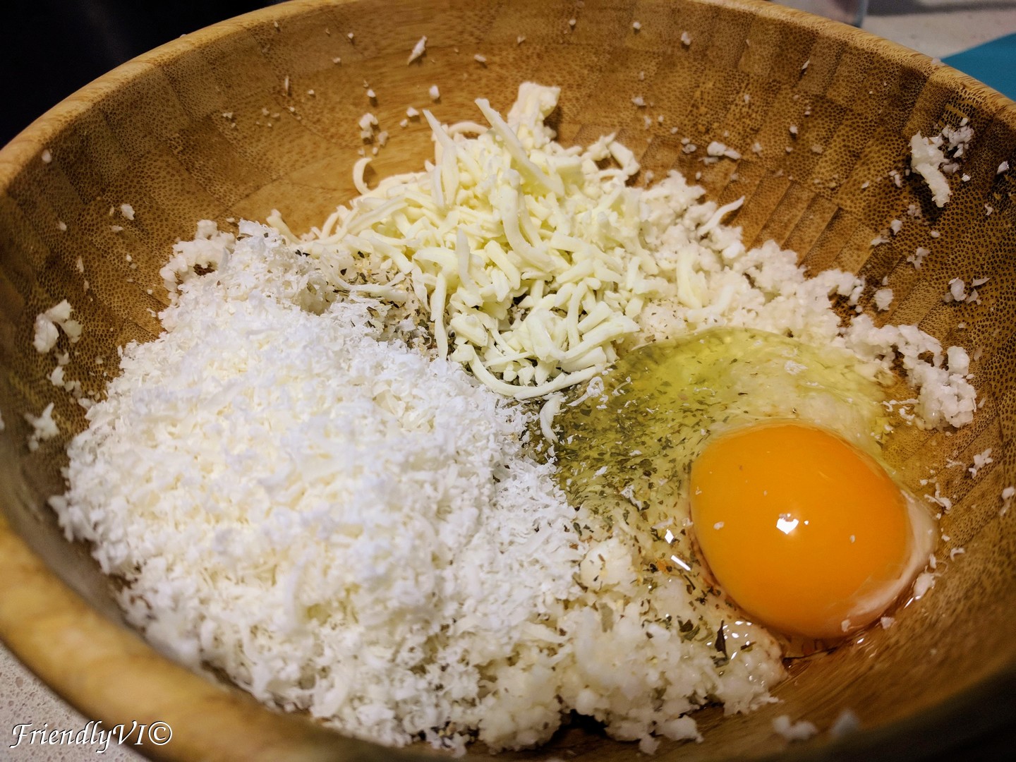 I usually quickly blend the cauliflower flowers as small as possible, but you can also grate it. Let it rest with salt for 20 min. Then squeeze the excess water from it using a clean towel. Now you can add the seasoning: salt and pepper to taste, dried garlic, grated Parmesan and one egg. Mix them well and take one full spoon and shape it in a rectangle on a baking sheet. Bake them at 185 ºC for 15-20 min and you can serve them with any sauce of your preference.