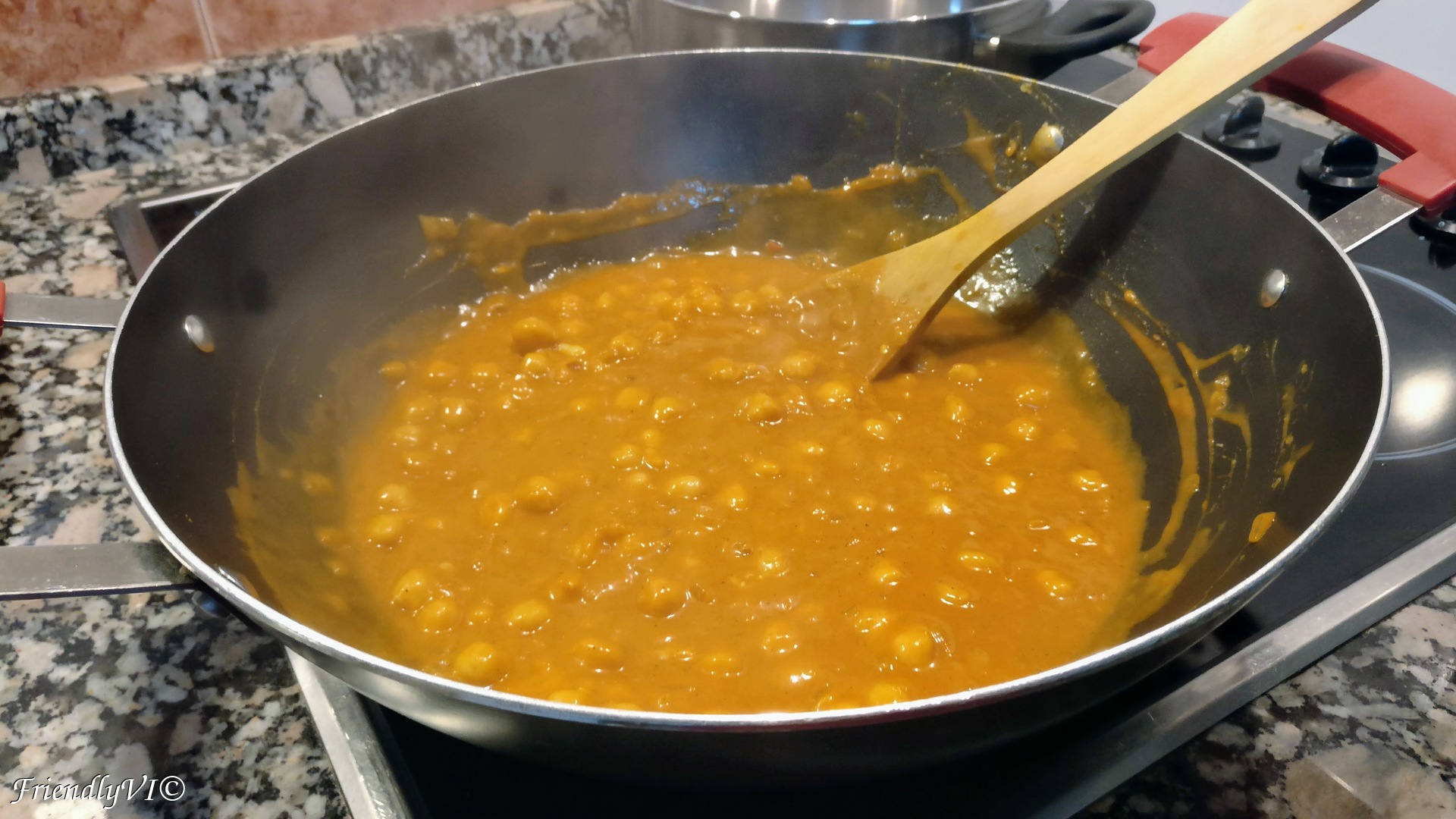 Saute one onion in a a bit of sunflower oil until it’s soft. Add a teaspoon of grated garlic and one teaspoon of grated ginger. After few seconds add 1 teaspoon of turmeric and 1 heaping teaspoon of garam masala and salt. Add a cup of tomato paste or canned diced tomatoes, a cup of coconut milk and one can of chickpeas. Simmer until well combined and serve with rice.