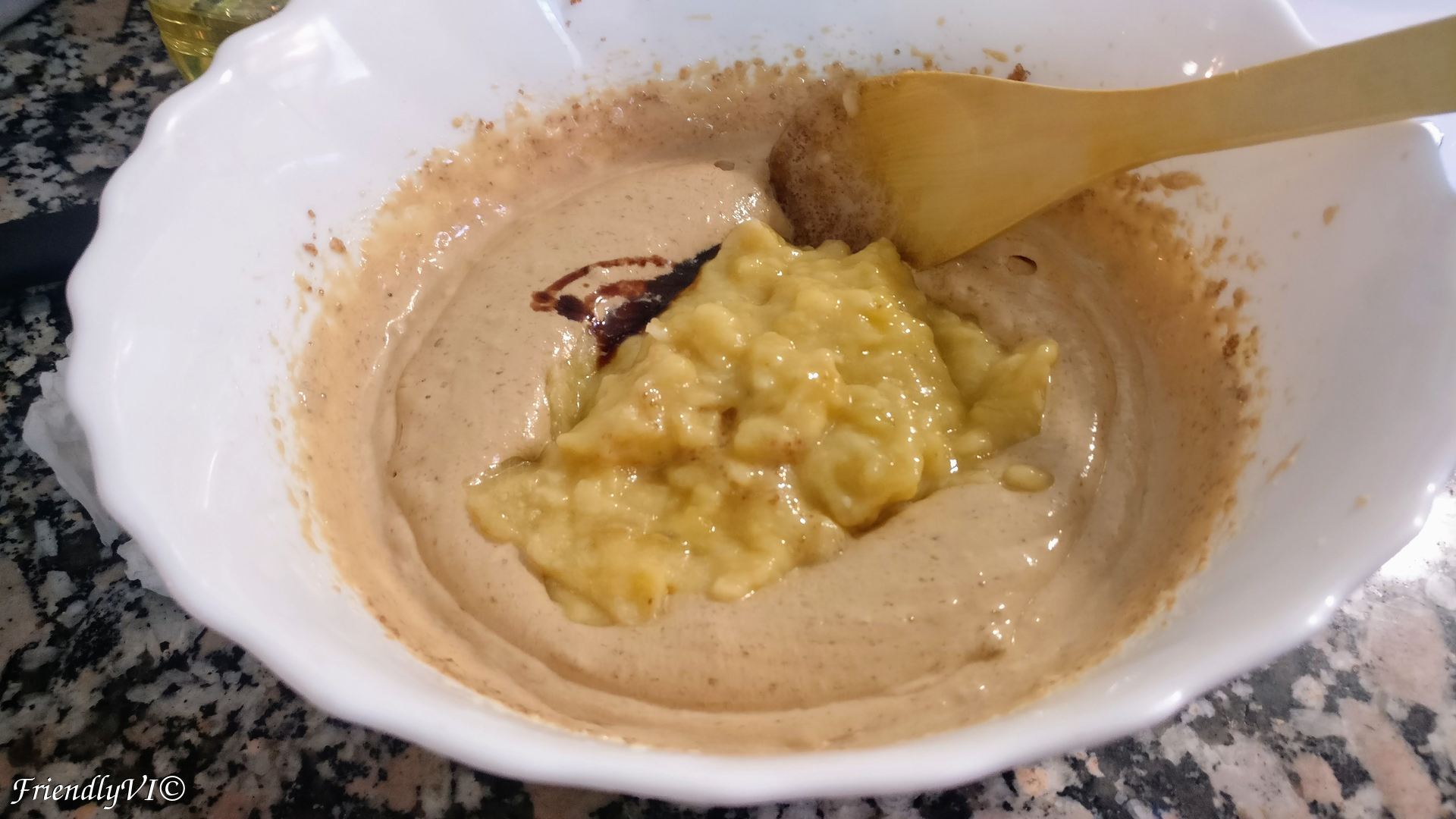 4. Add the banana puree together with the vanilla essence.