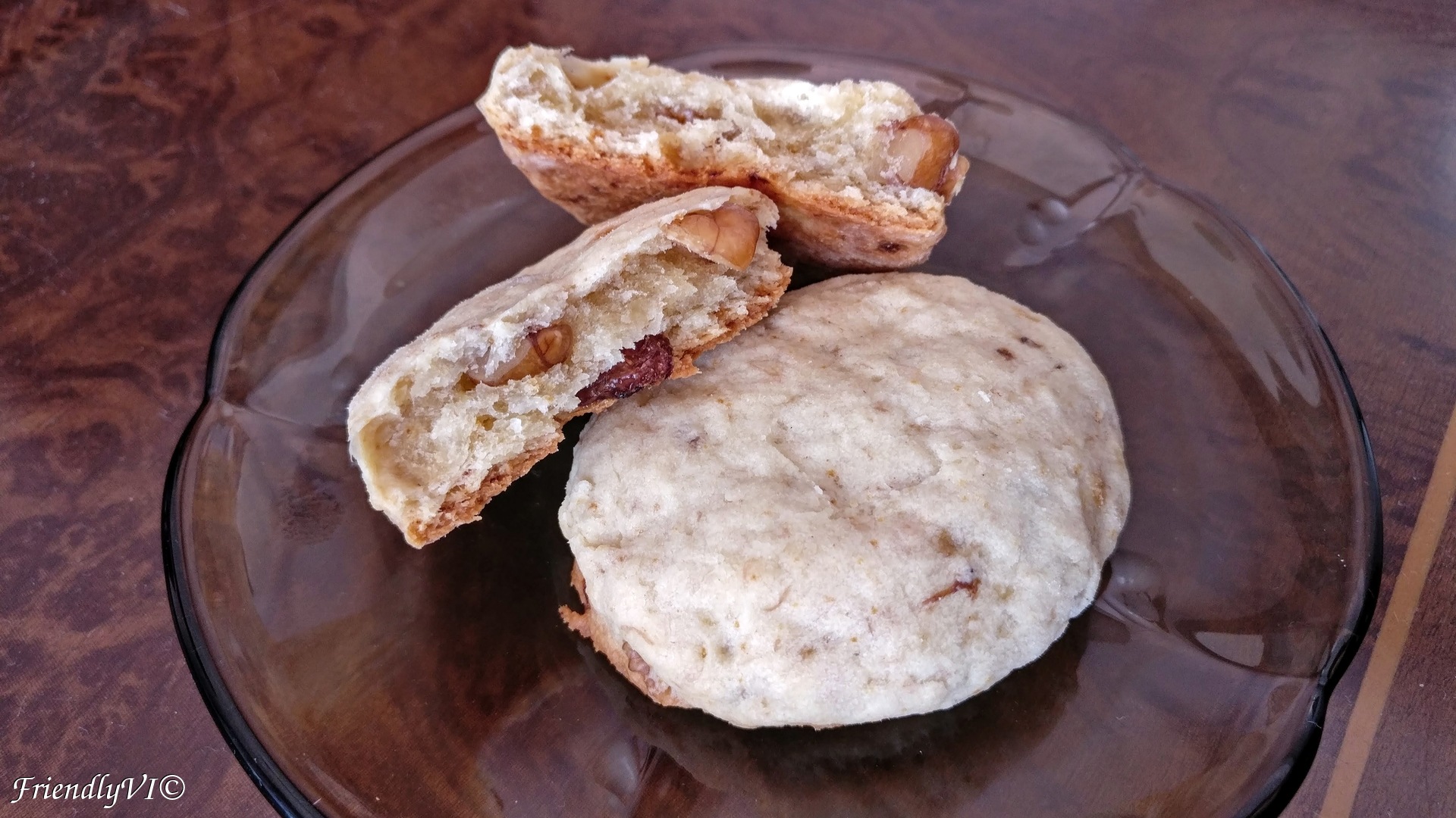- And the banana-walnut cookies with raisins are ready.