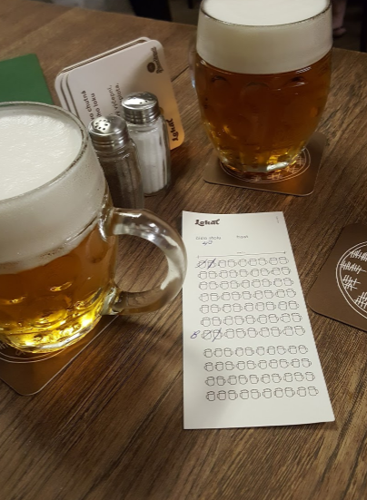 Lokal is a very… oh well, local place (:D)! This is the type of place where you can automatically get a beer if you finished yours already, they just quickly scratch it on a paper with beer symbols on it. The place has a very inventive decoration style, poked holes in the walls with lights behind, representing symbols, jokes and legends of Brno.