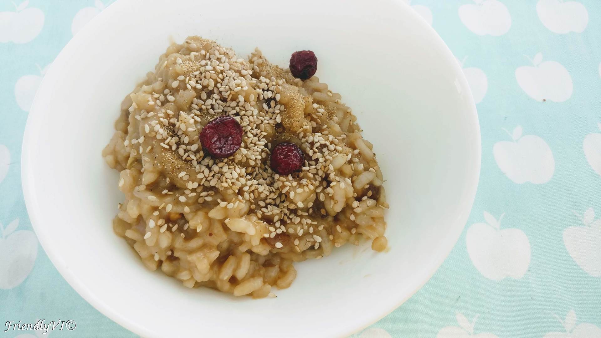 Or: replace the apple juice with water and 1/3 of the coconut milk with peanut butter. Add a bit of vanilla essence and serve with sesame seeds: