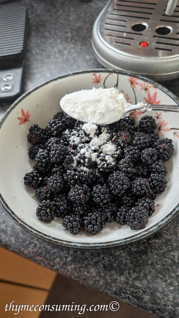 - Mix in the washed blackberries a tablespoon of cornstarch.