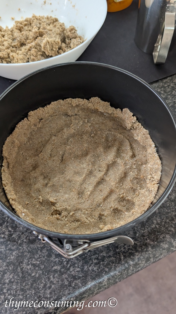 - Take 2/3 of the dough and press it on the bottom of your tray.