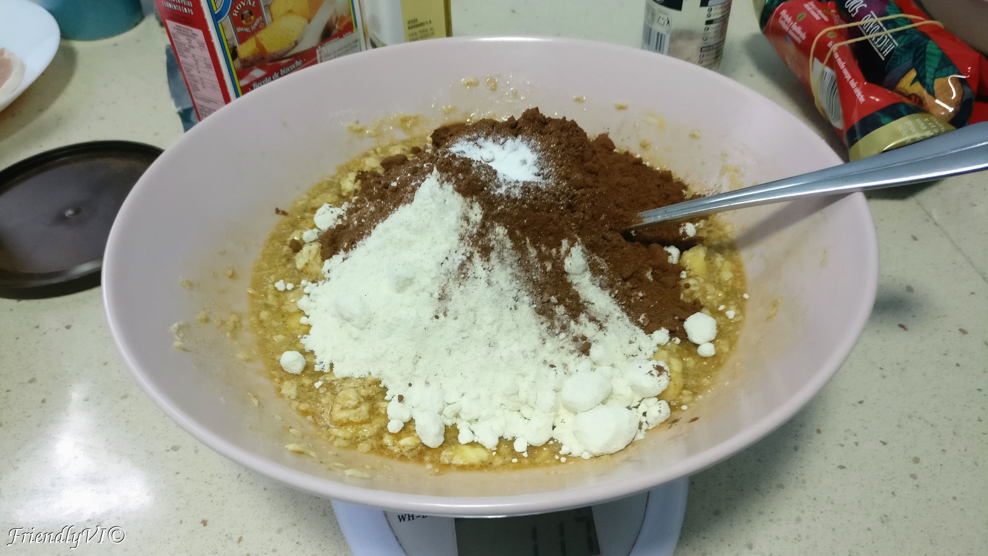 5. Combine it with the flour, cocoa powder, vanilla, salt and baking powder.