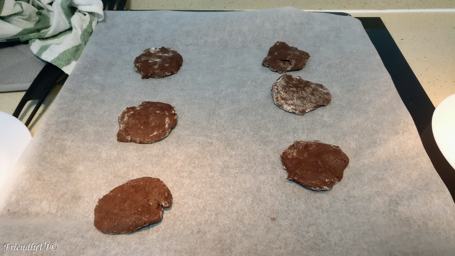 7. Divide the dough into two part: the first one should be shaped into 6 flat circles.