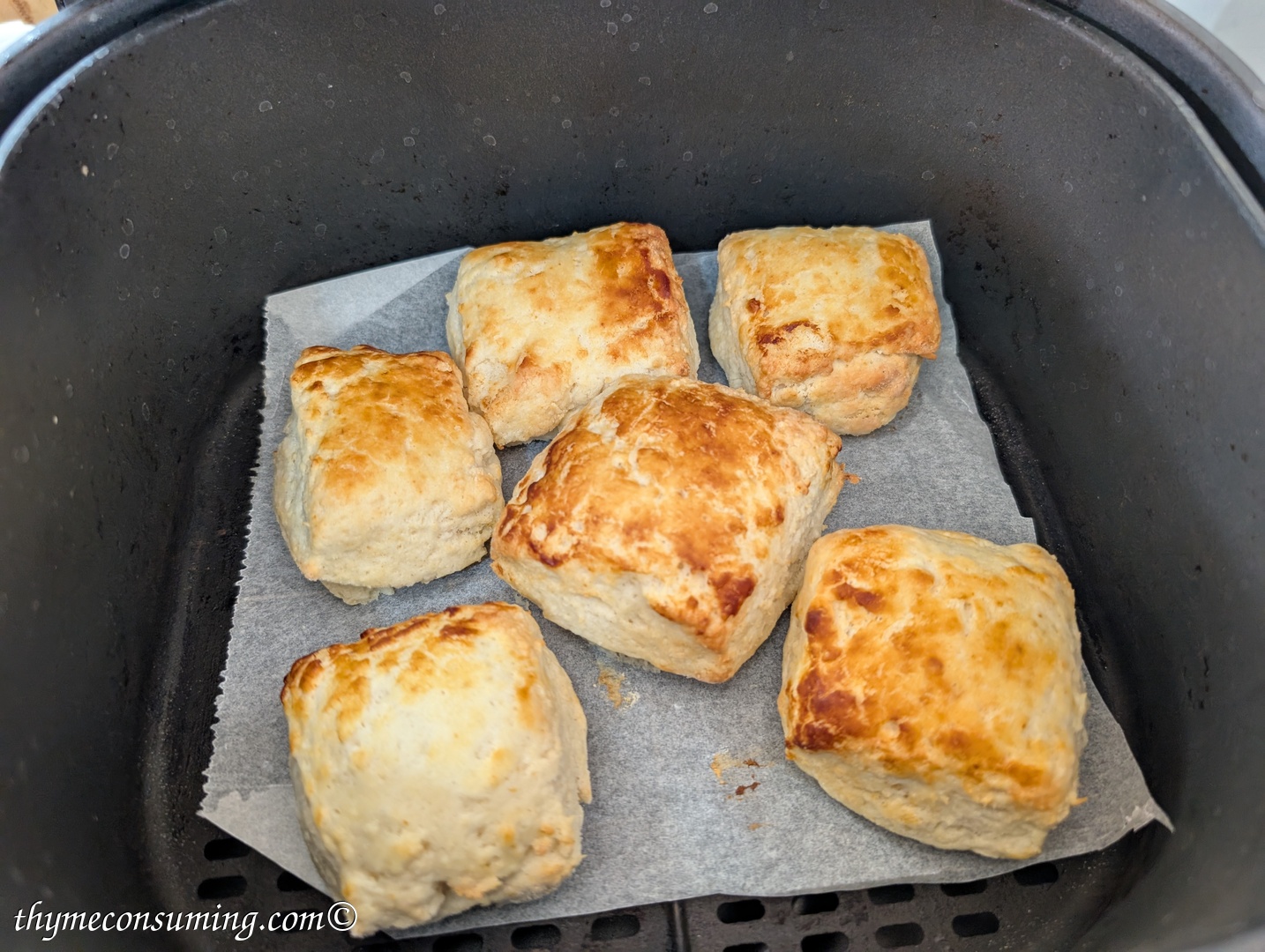 - Place it in the preheated airfryer with a baking paper at the bottom for 10-12 min at 195 C or until they look golden.