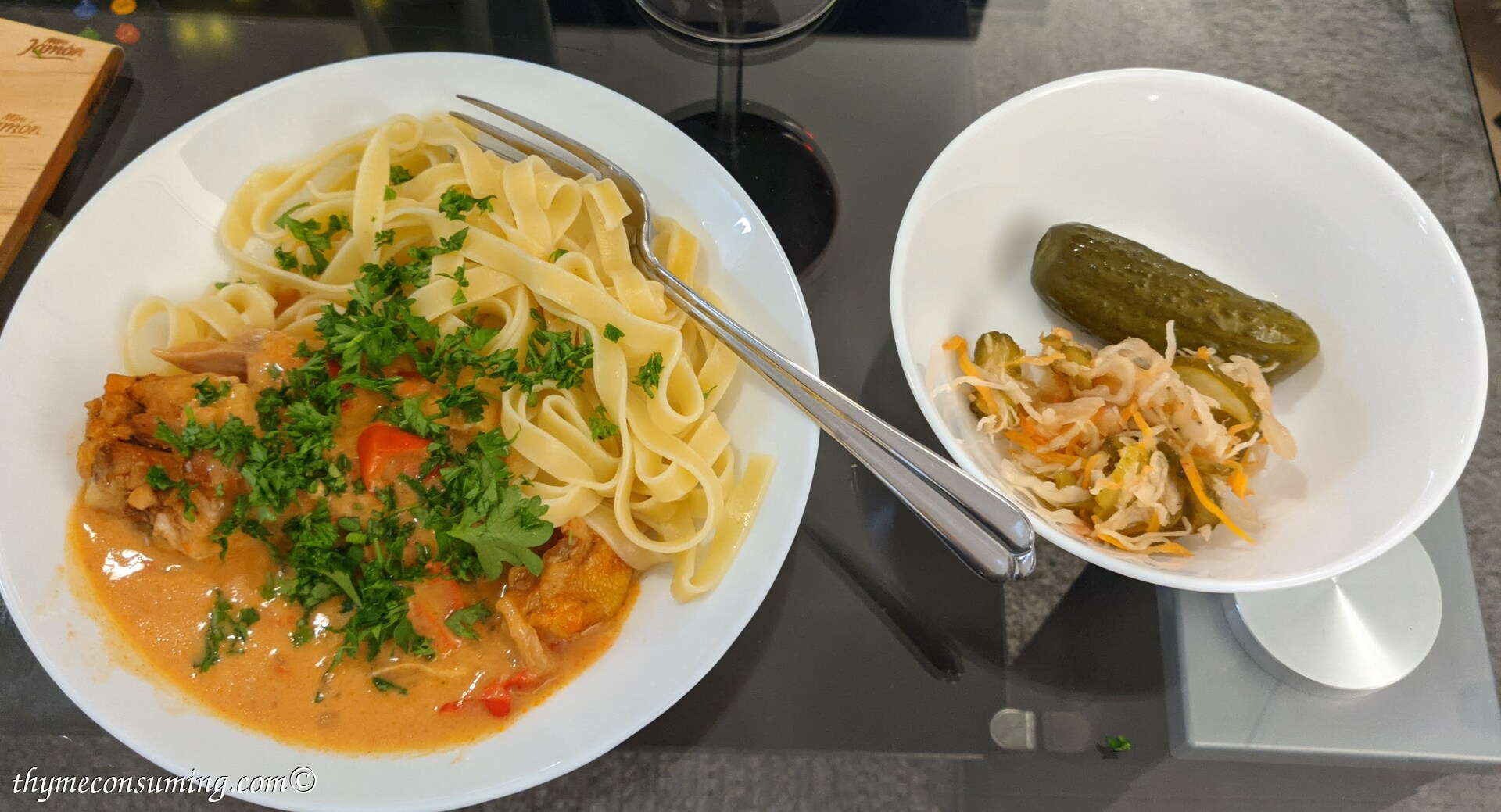 I always somehow thought that the Hungarian recipe chicken paprikash is complicated. But it is actually very easy to make and very delicious on top of that.