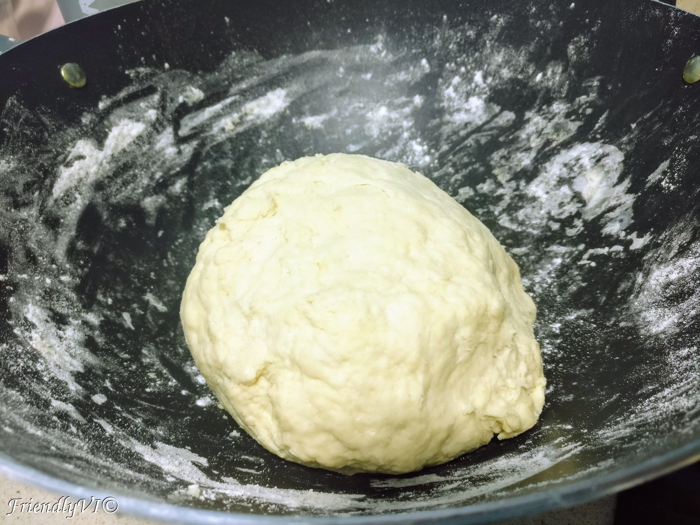 4. Mix well and knead for 2-3 min. The dough is pretty soft so you can use a bit of flour for kneading.