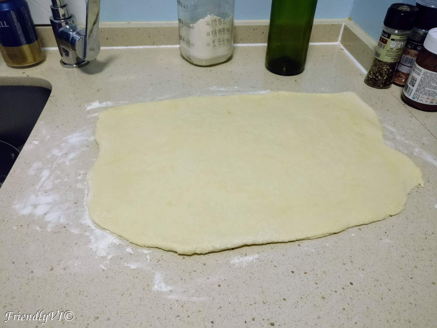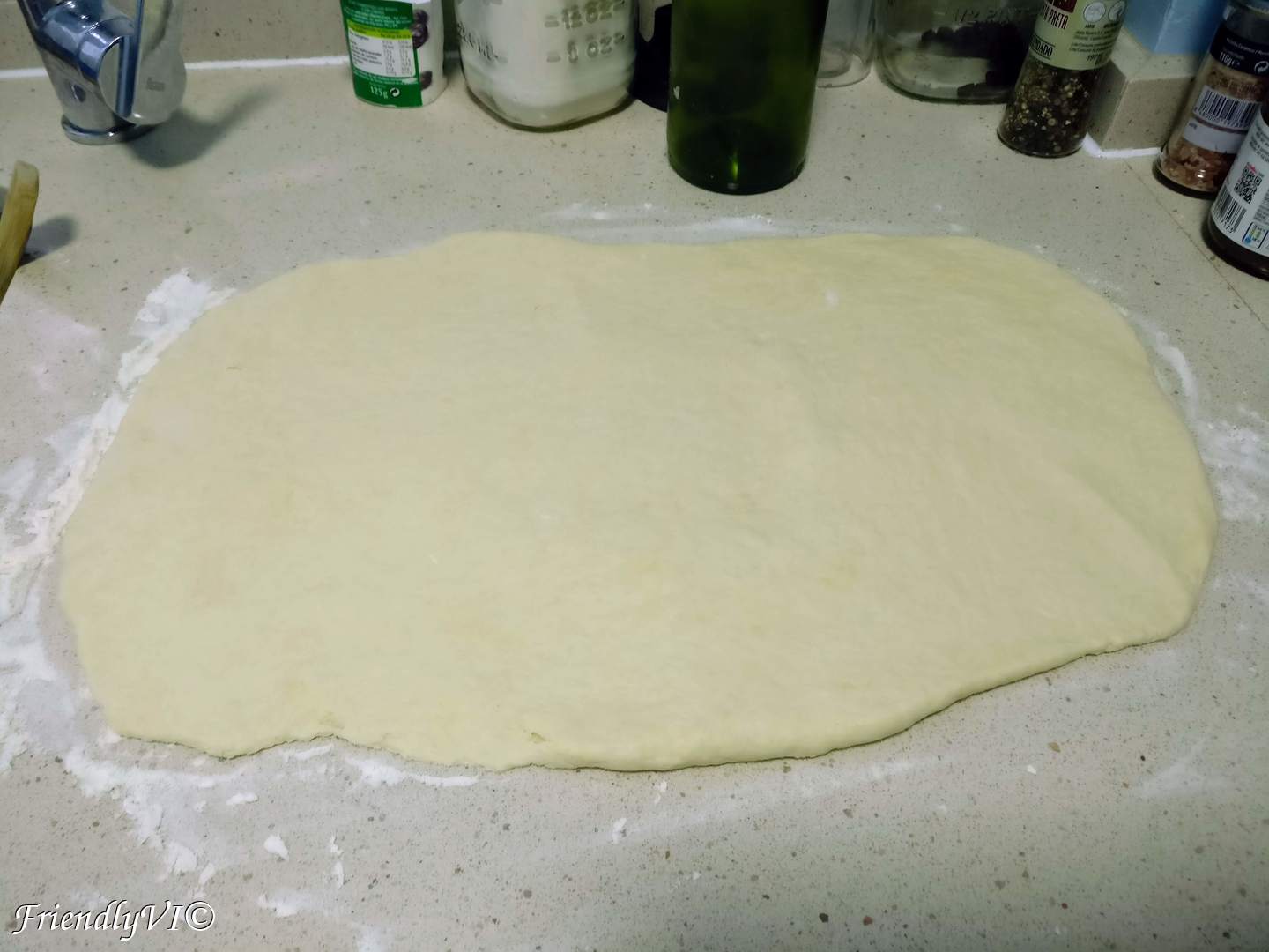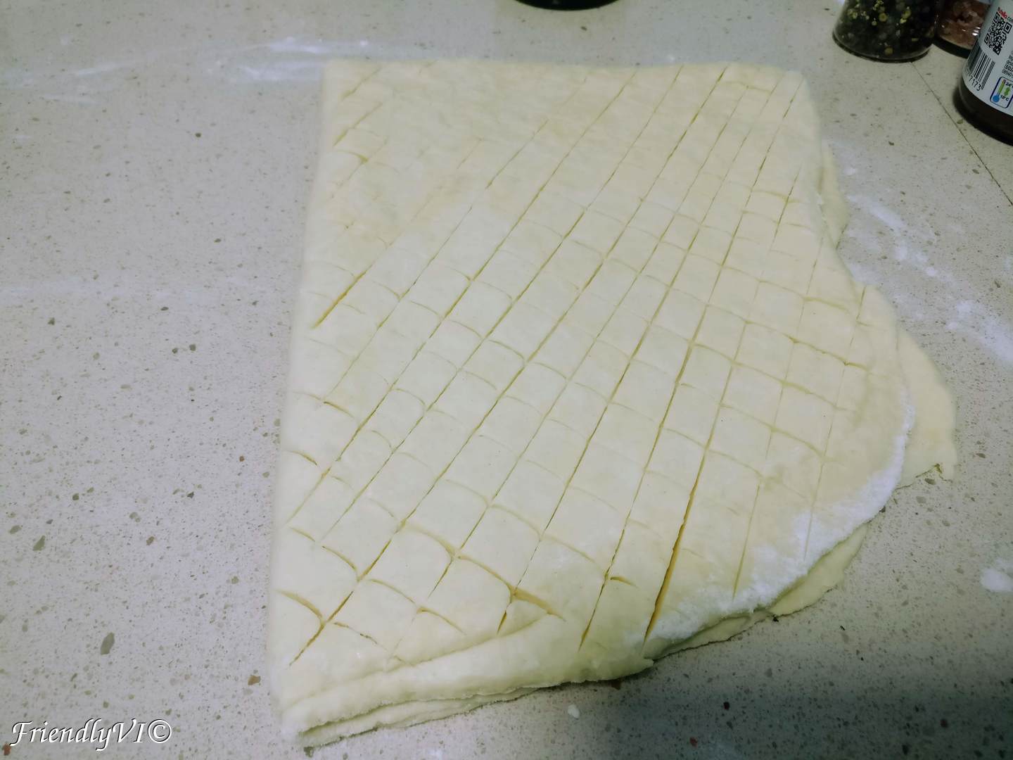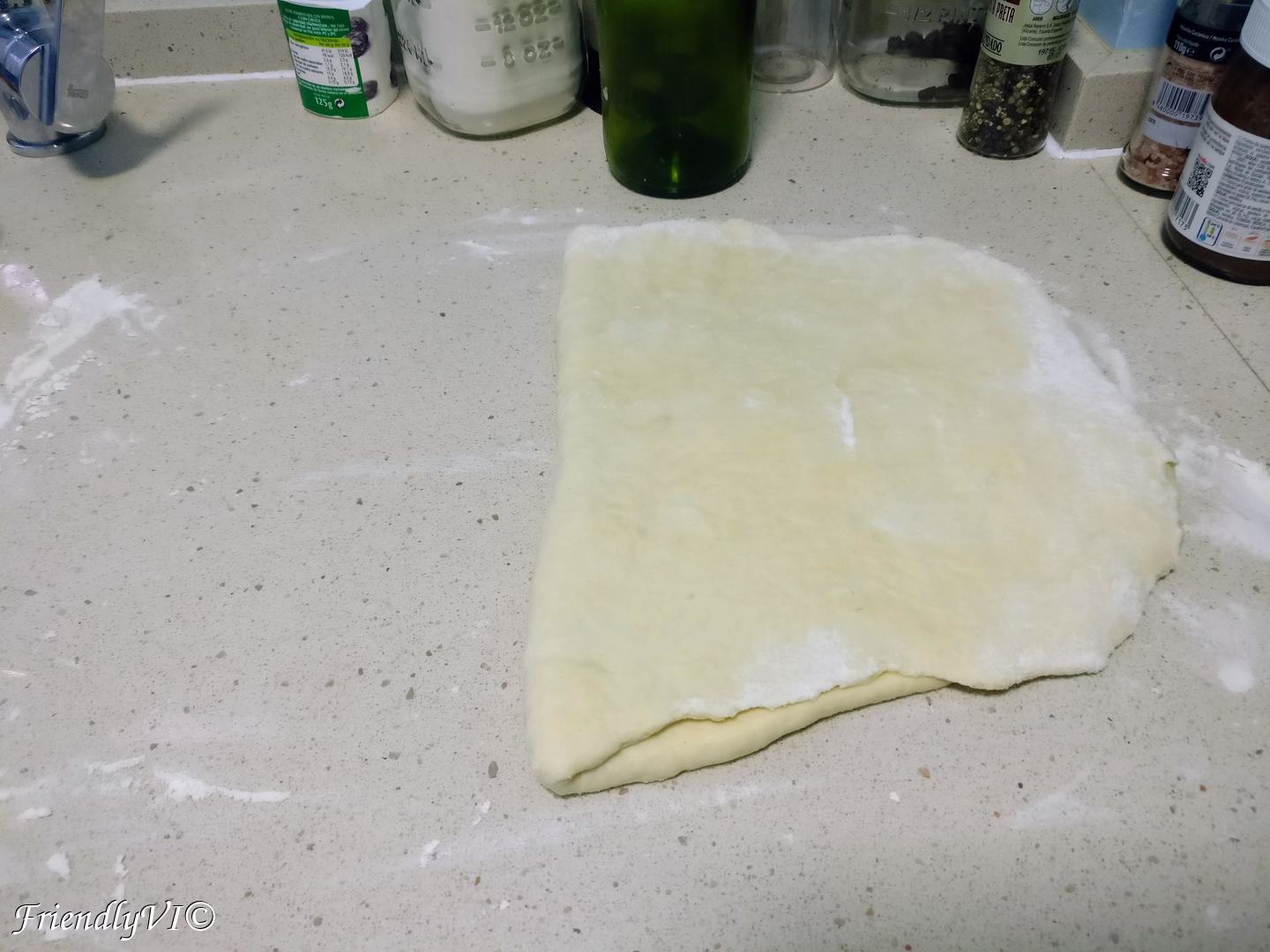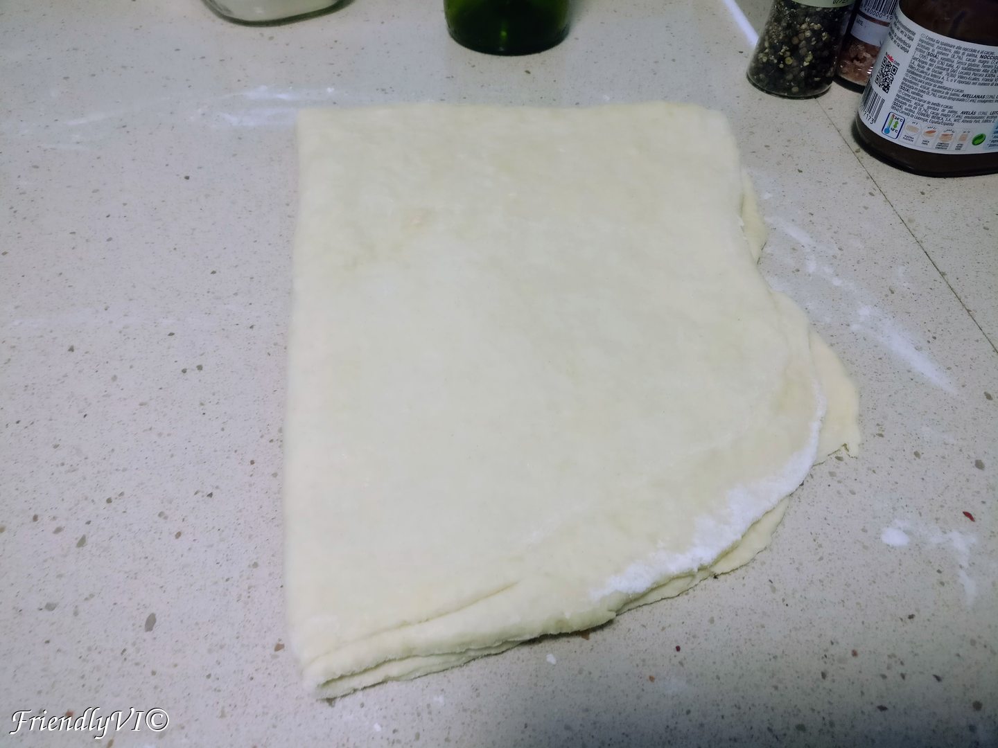8. Roll it again in a rectangular (do not undo the previous fold) and then fold it again once, so that the dough is 1.5-2 cm tall.