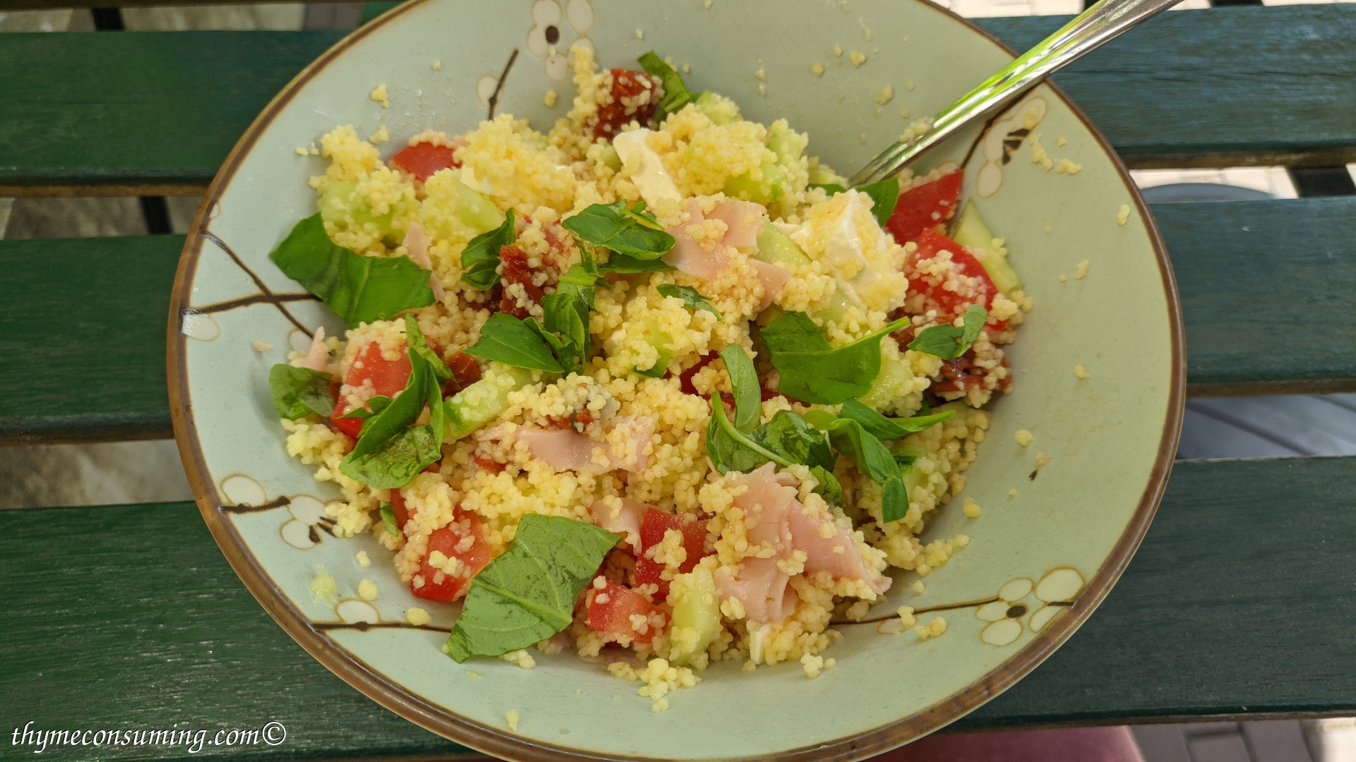 - Olive oil, ham, red pepper, cucumber, fresh basil: