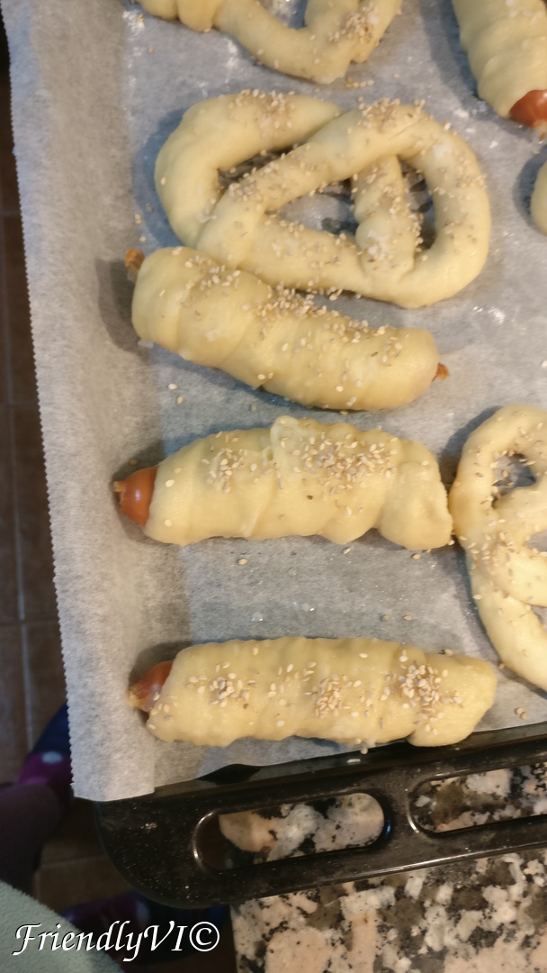 Here is how to roll them with the covrigi dough – check the recipe here. Then simply proceed the same: boil them for a minute in the baking soda water, sprinkle sesame on top and bake them at 200C for 20-25 min: