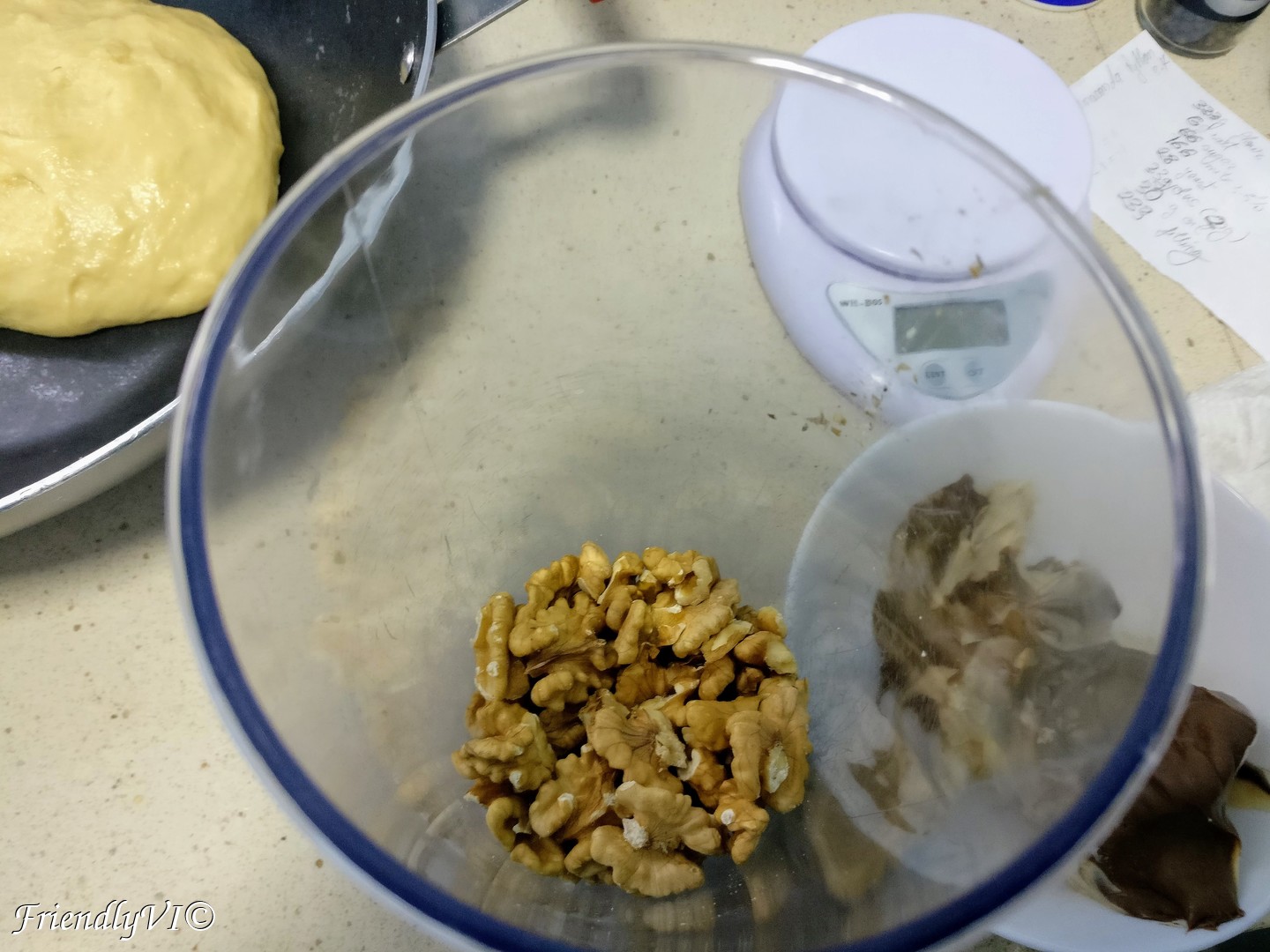 12. Prepare your filling too: blend the nuts, make sure the chocolate is spreadable, weigh them to make sure they are not heavier than 235 g.