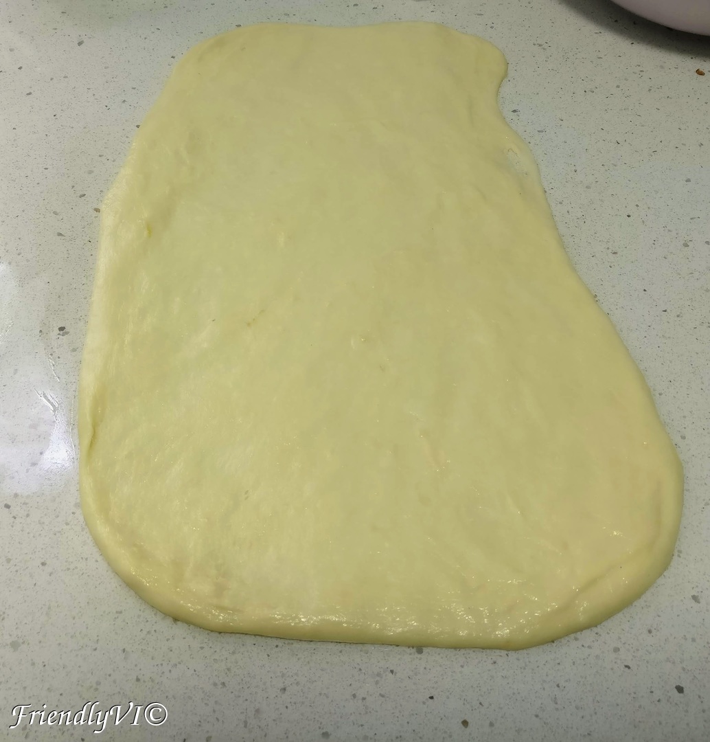 13. With a bit of oil, spread half of the dough in a rectangular shape.