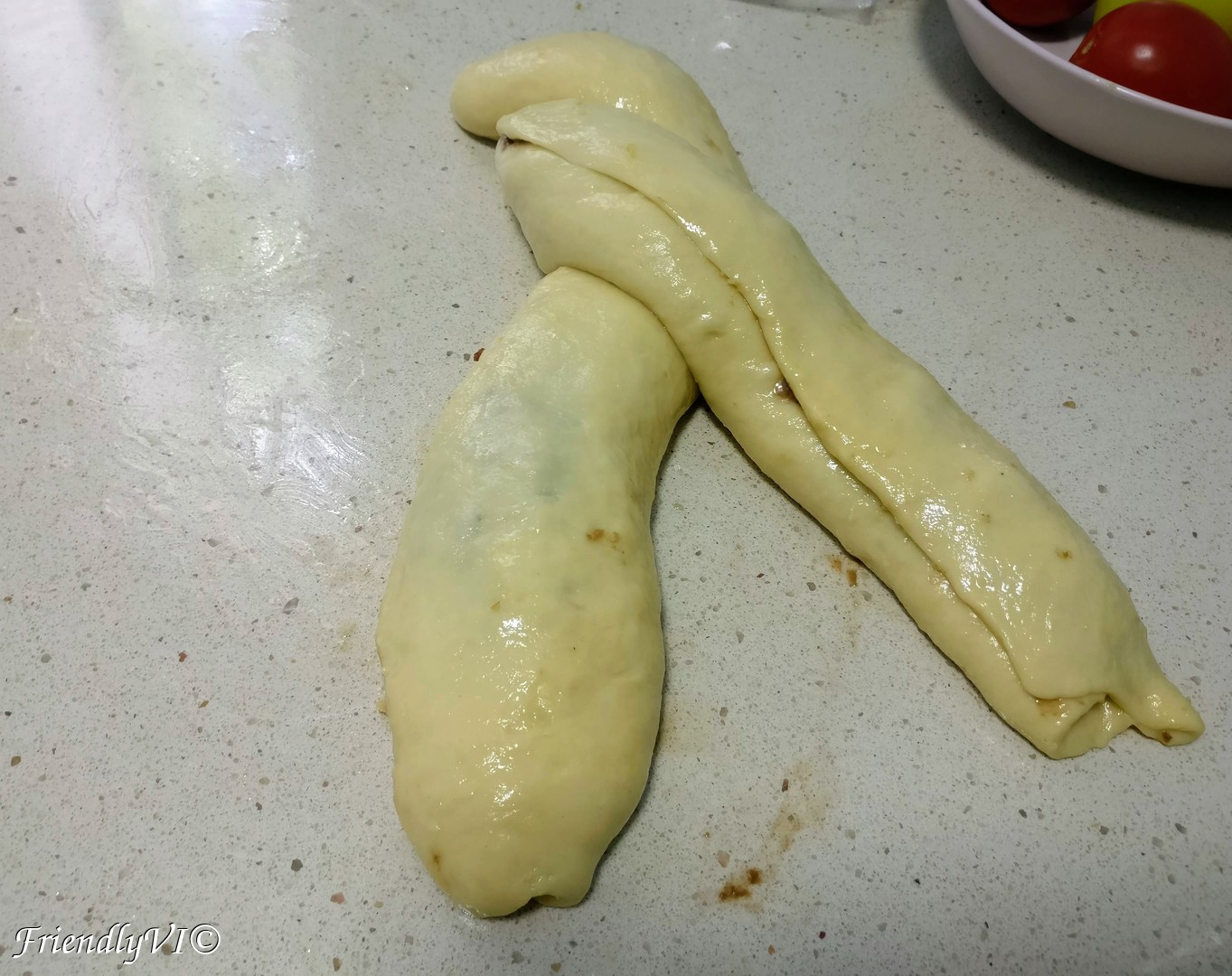 15. Carefully roll it in a tube shape, making sure the ends are well “glued” together so that the filling won’t come out.