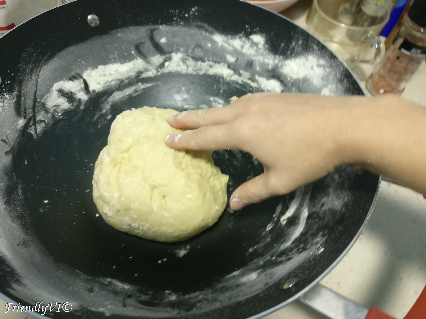 - Add the rest of the flour and knead for 5 min until it becomes smooth. You can use a bit of sunflower oil if it gets sticky.