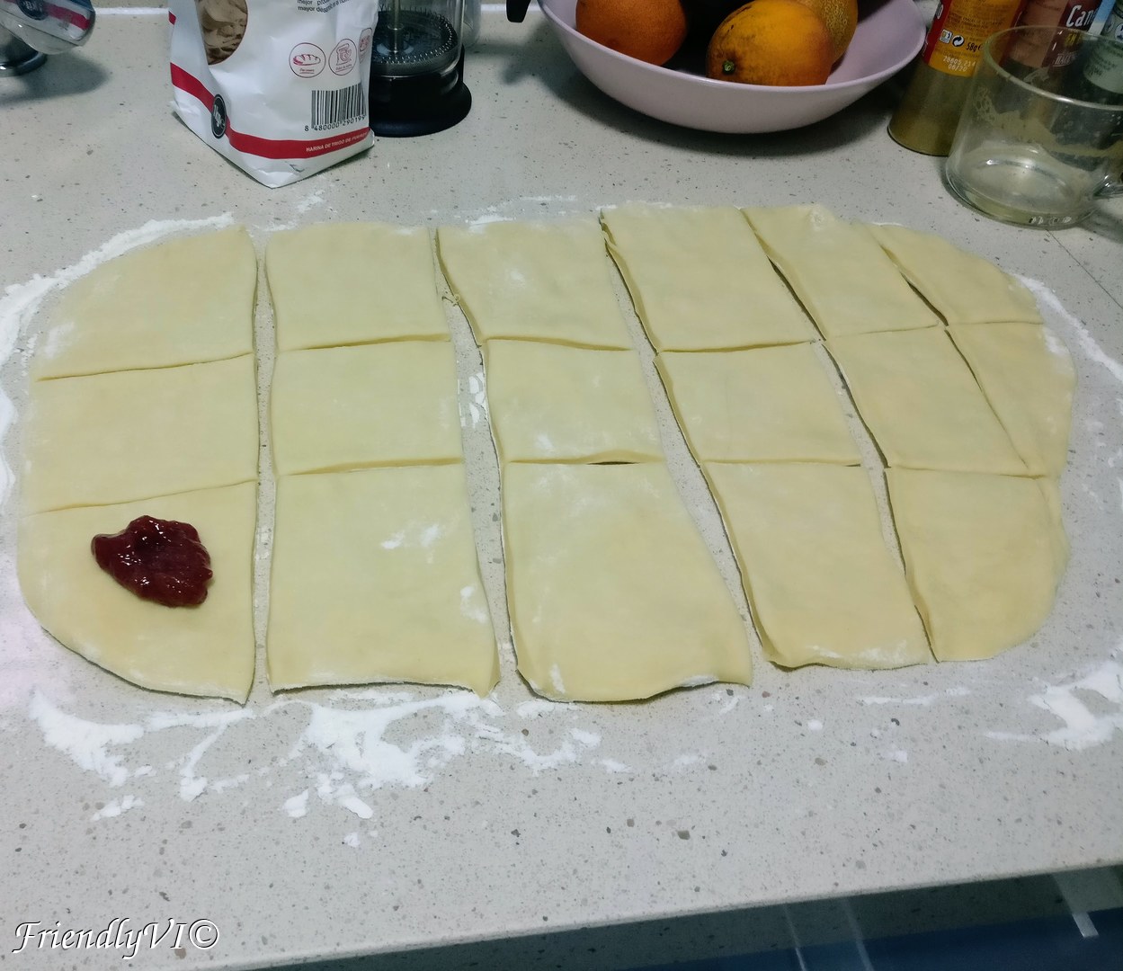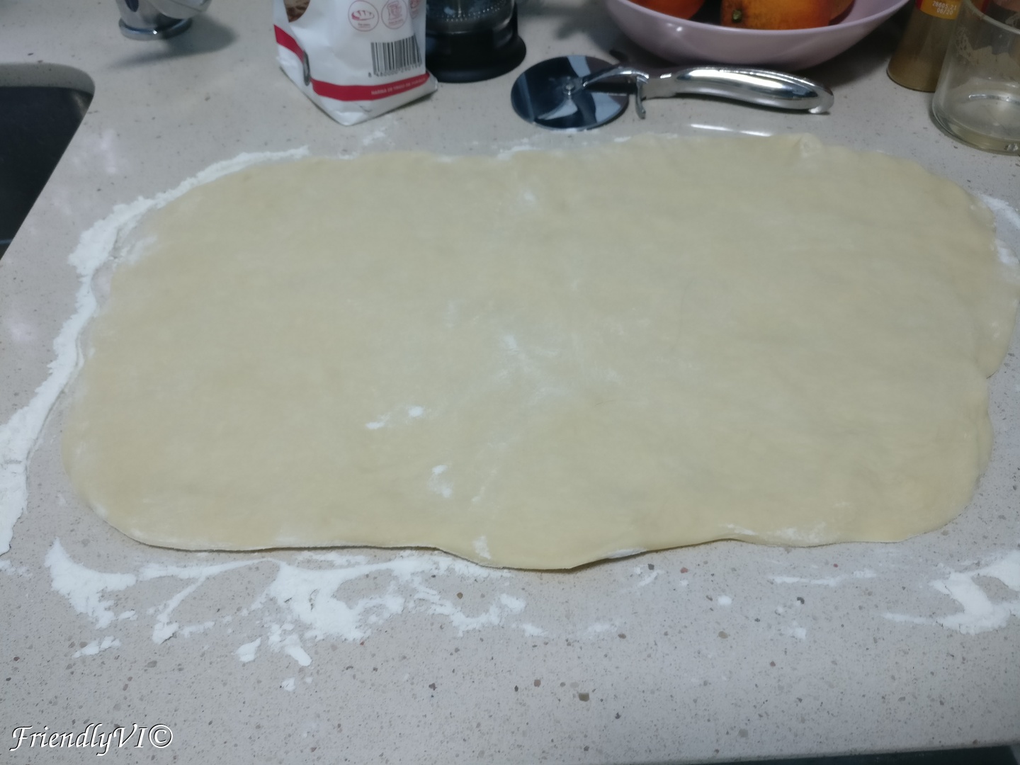 - Spread the dough on the table, using flour underneath.