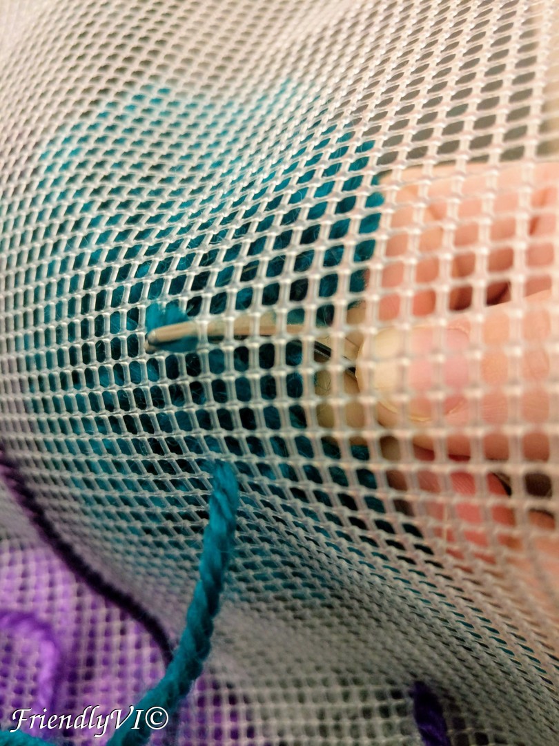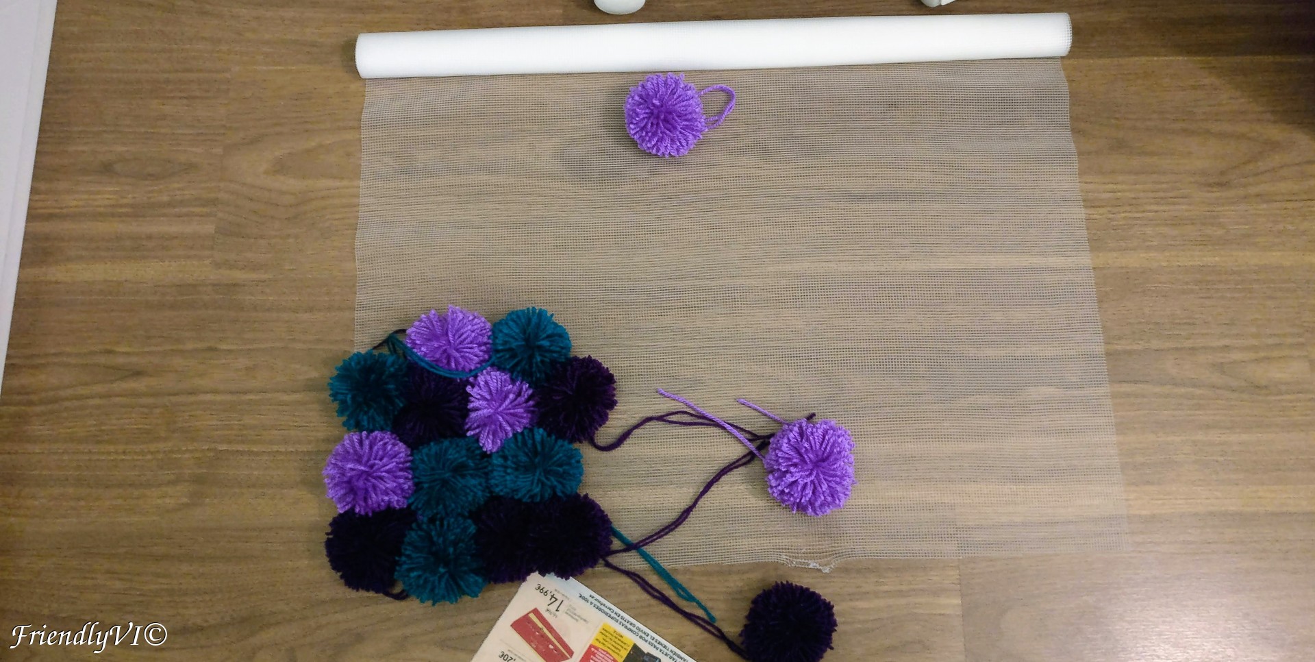For this you will need an anti-slip mat. I bought mine in Ikea. Since the holes are very small, I used some tweezers to slip in the two ends of the pom-pom. I placed the desired pattern in advance and took a picture, to make sure I will follow it.
