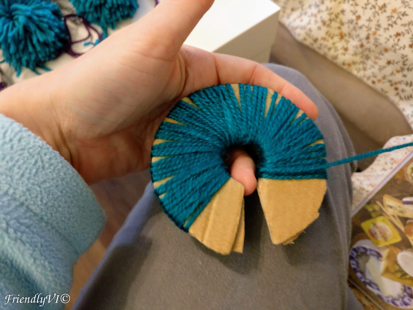 Start wrapping the thread around the two pieces of cardboard, that are held back to back, it should be around 60 movements. Wrap it back and forth at least 5 times (~240 movements).