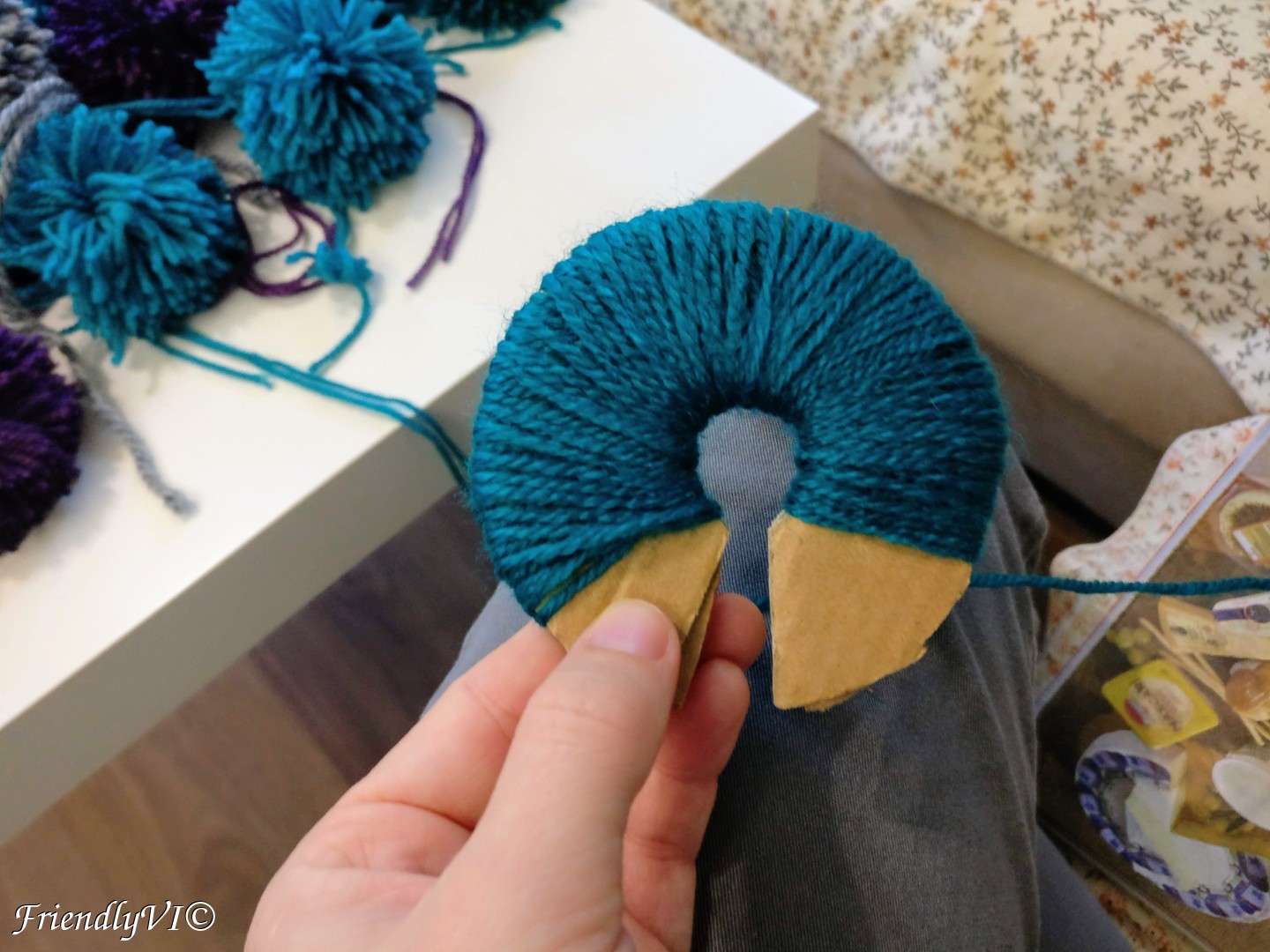 Making your own pom-pom rug is extremely time consuming, so make no mistake to be tricked into it by the sped-up gifs on the internet. However, it can be a very relaxing and meditative process. It still takes a lot of time, but the result is very satisfying and, most importantly, very fluffy.