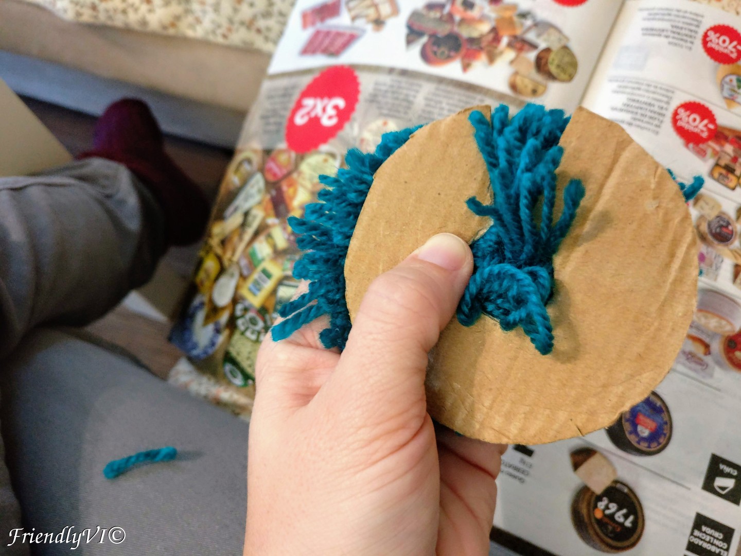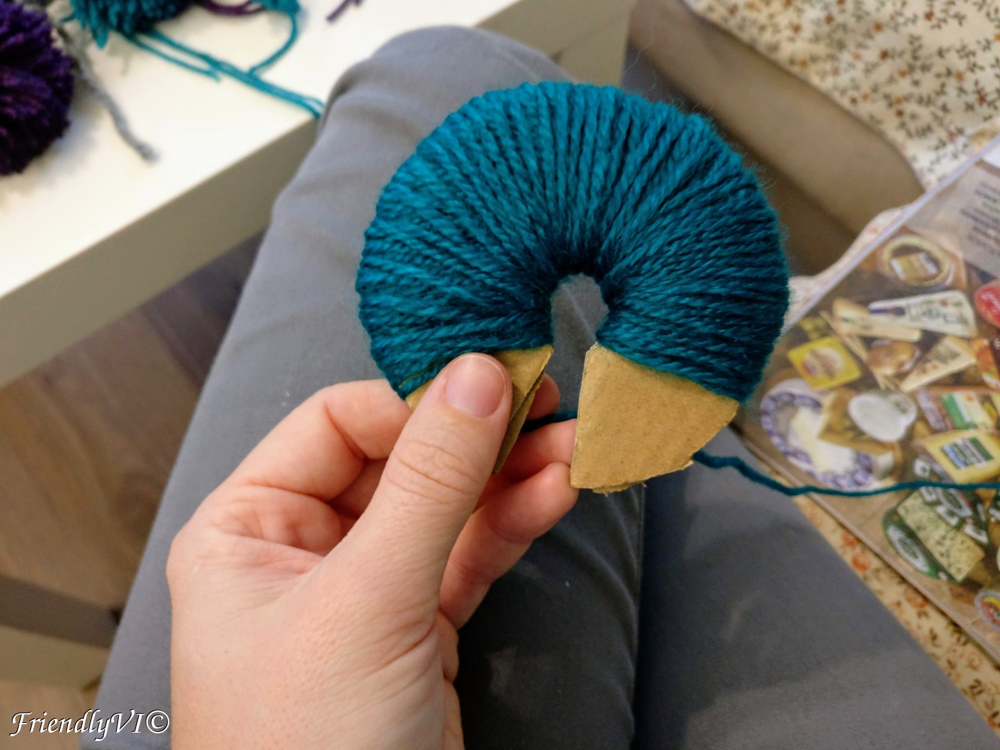 There are two ways of making a pom-pom at home with using no special tools. Just cut two pieces of cardboard like in the picture below and prepare a pair of very good scissors. That’s all!