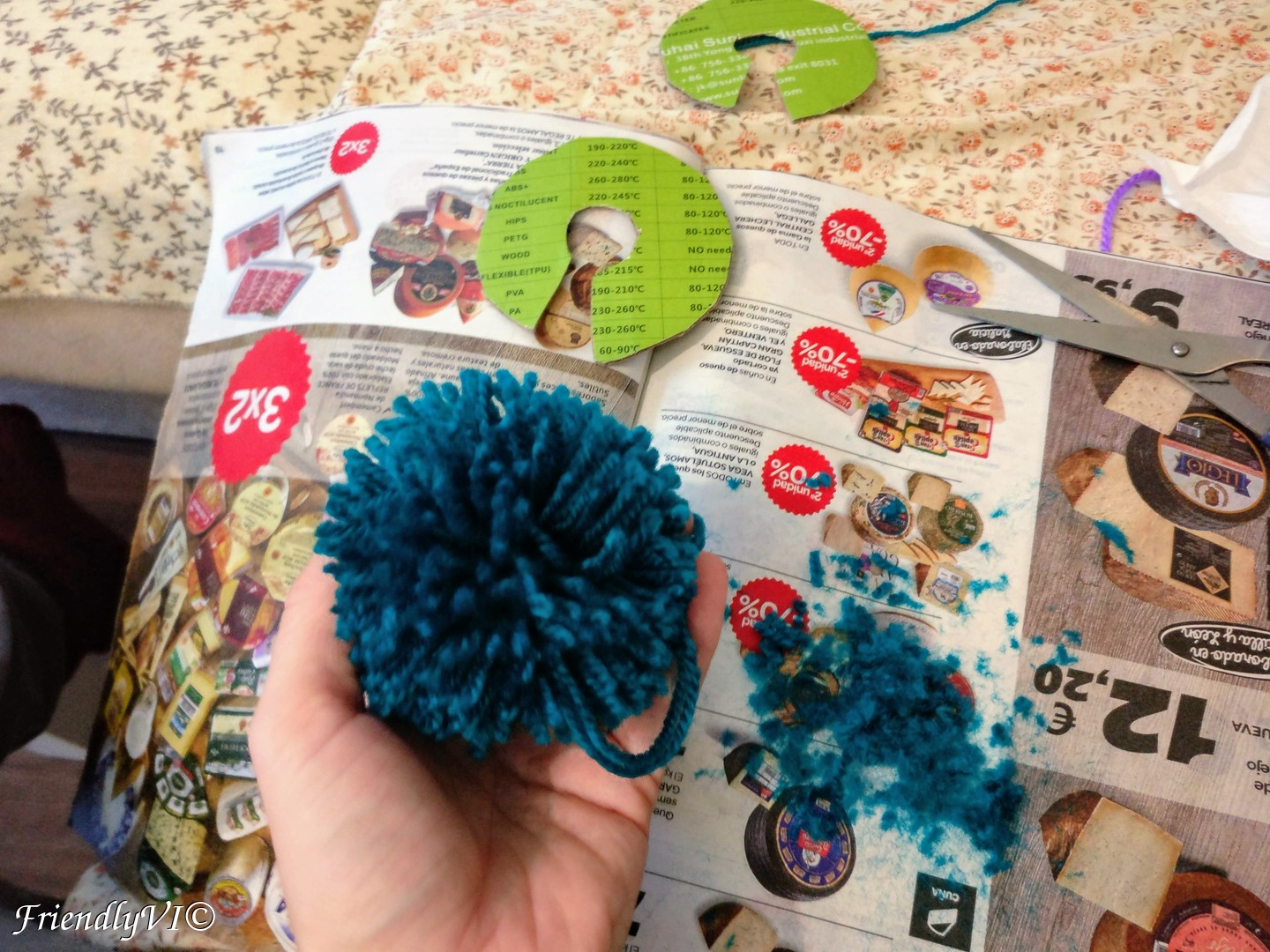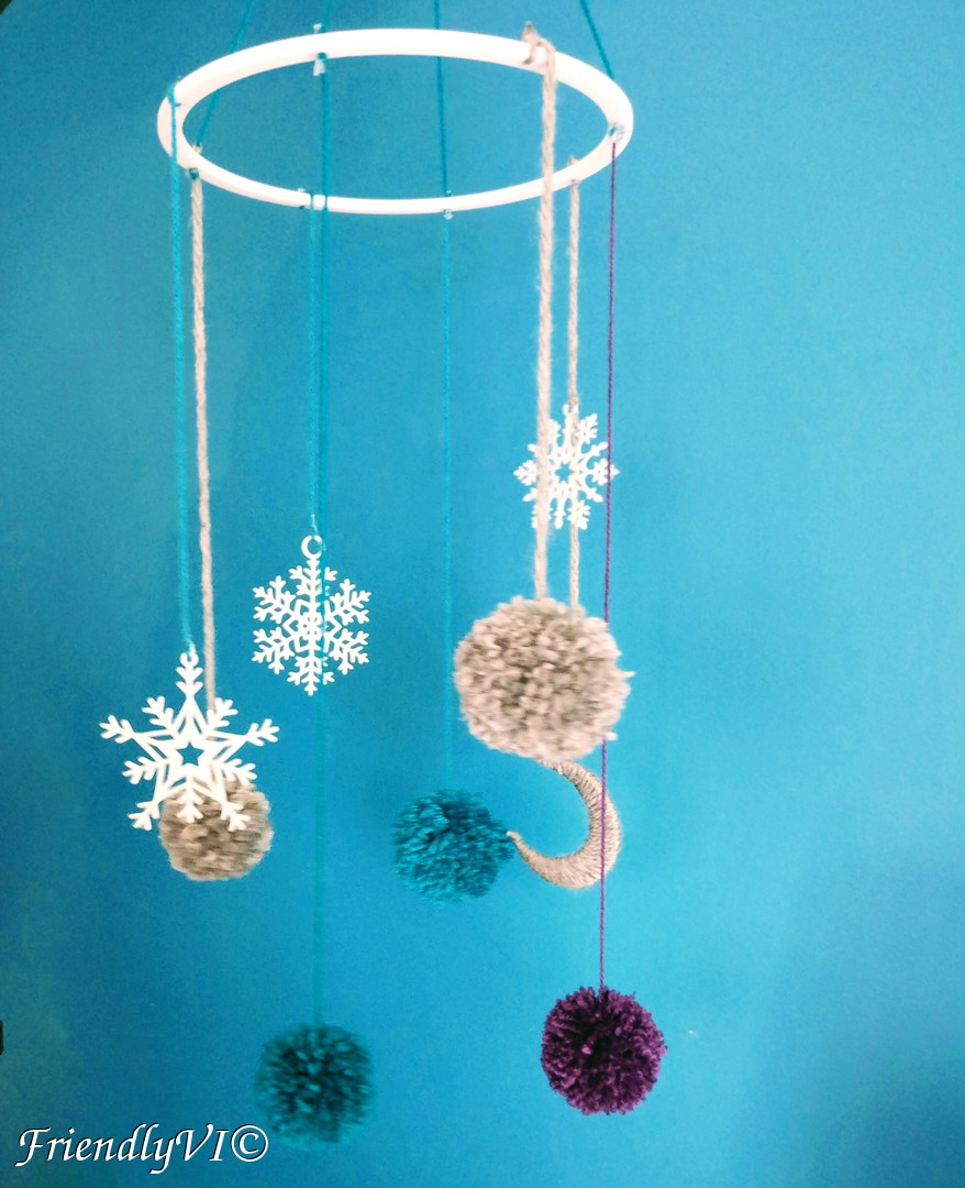As a bonus, another thing I realized I could create out of pom-poms is a baby mobile. I used other elements from plastic, like the circle on the top and snowflakes that I 3d printed, but you can surely replace it with any other material. These pom poms were cut a lot more in, in order to make them look perfectly round and very fluffy. It is a wonderful present for a baby shower and its fluffiness won’t remain unnoticed.