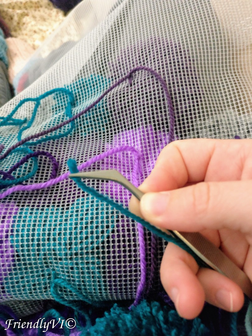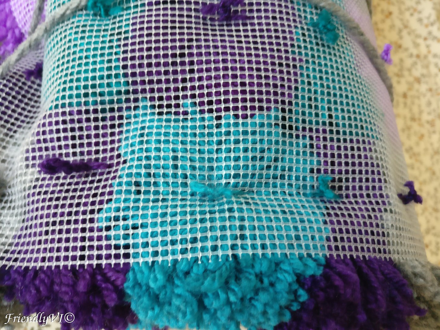 Cut the remaining ends (make sure you use a solid and secure knot) and there you have your fluffy colorful rug.