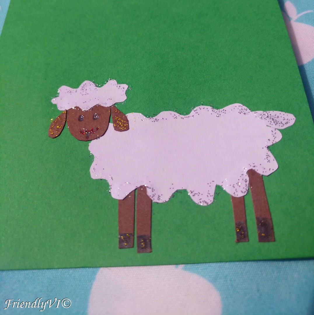 Here are two ideas I came up with for Easter cards. I know that the lamb is traditional for Easter, but mainly as a dish. However, it has religious connotations, too. I just find lambs super cute. So cute that I had to use my new glitter stick on it, too.