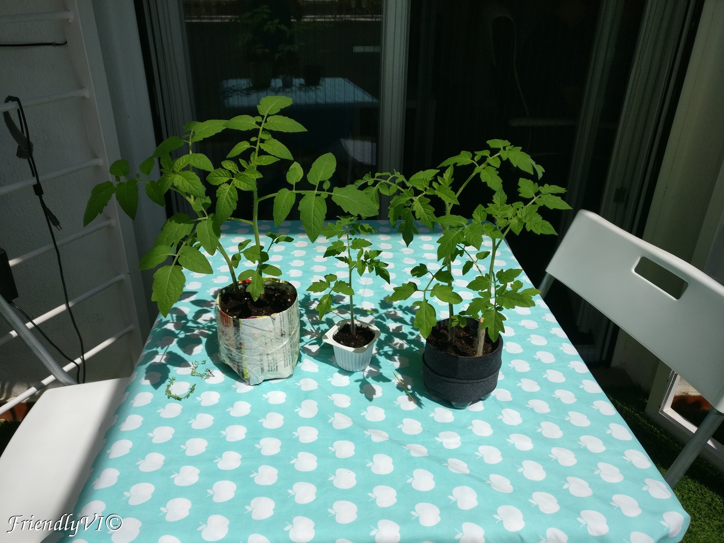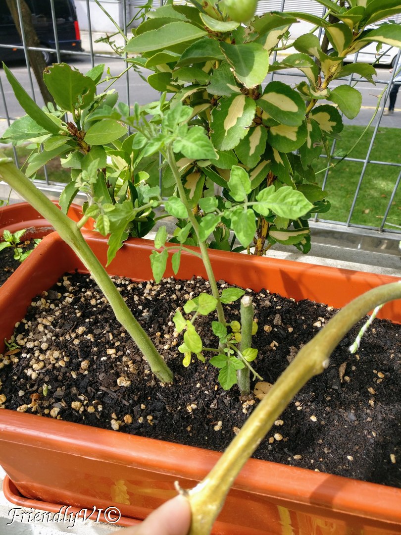 - I pruned the taller tomatoes, both the red and yellow and left the tiny yellow one unpruned for testing.