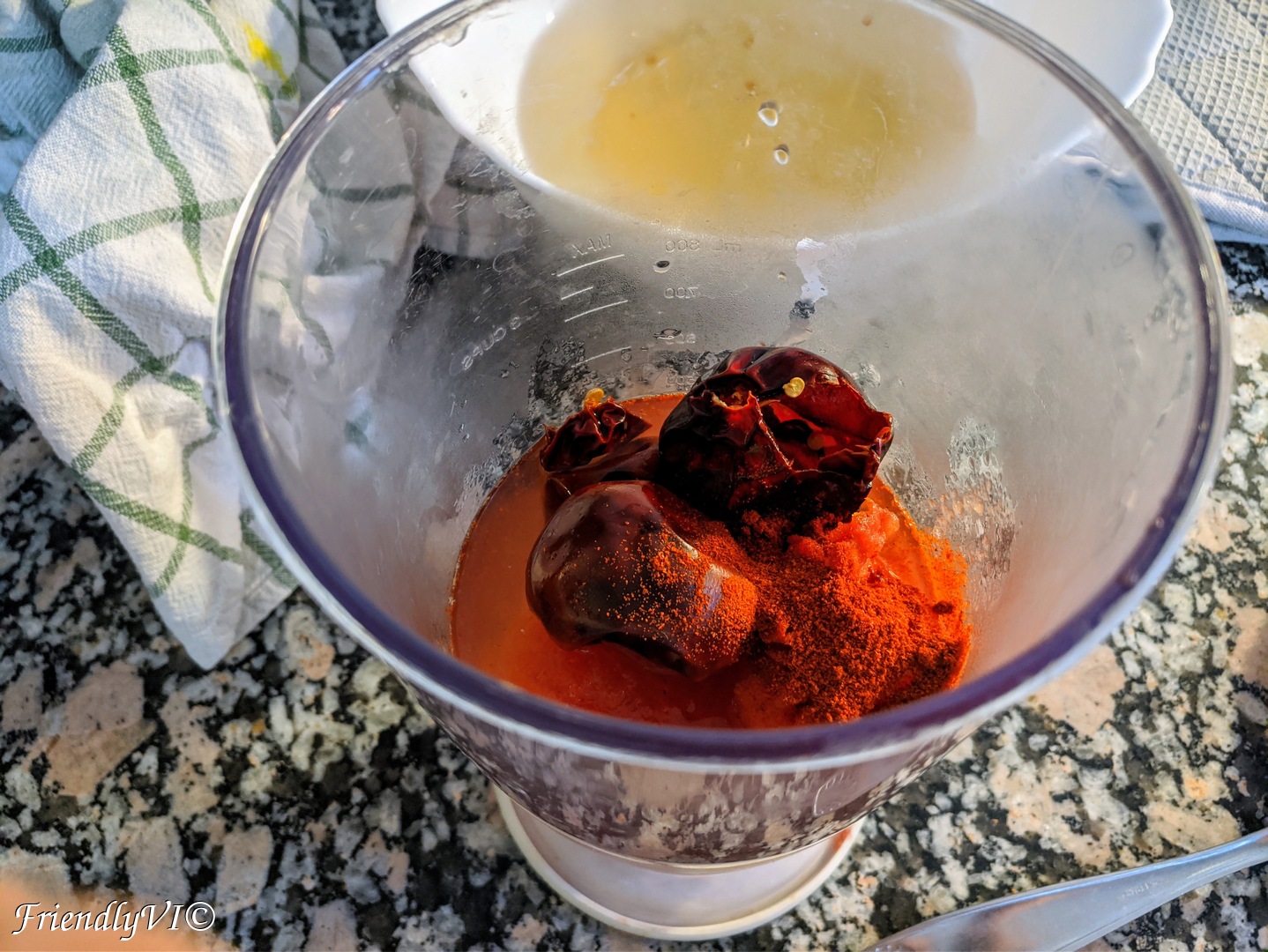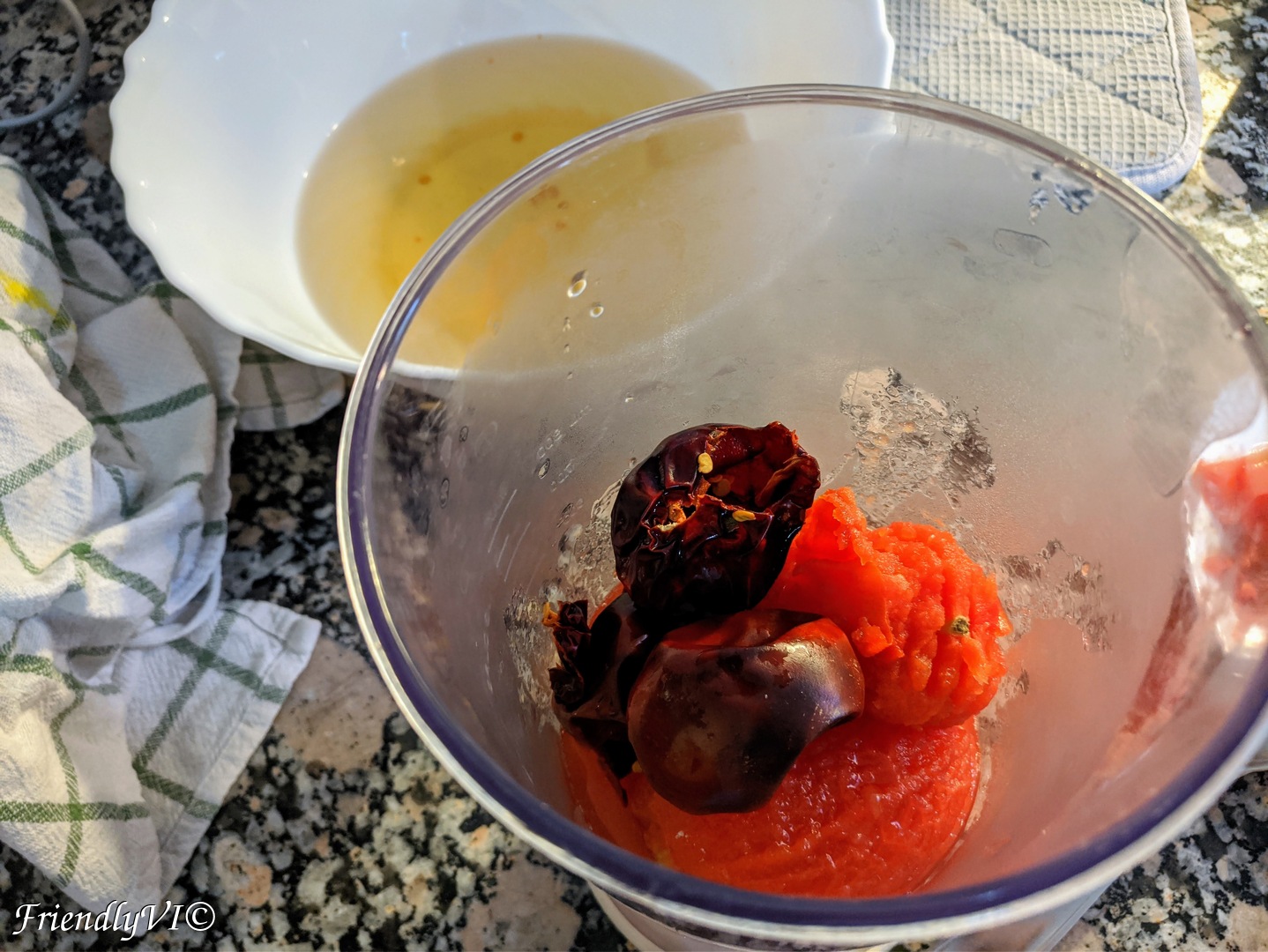 - Peel the tomatoes and add them to a blender together with the dried chilies, sweet paprika and a cup of broth.