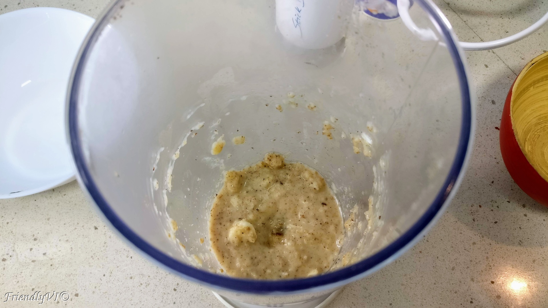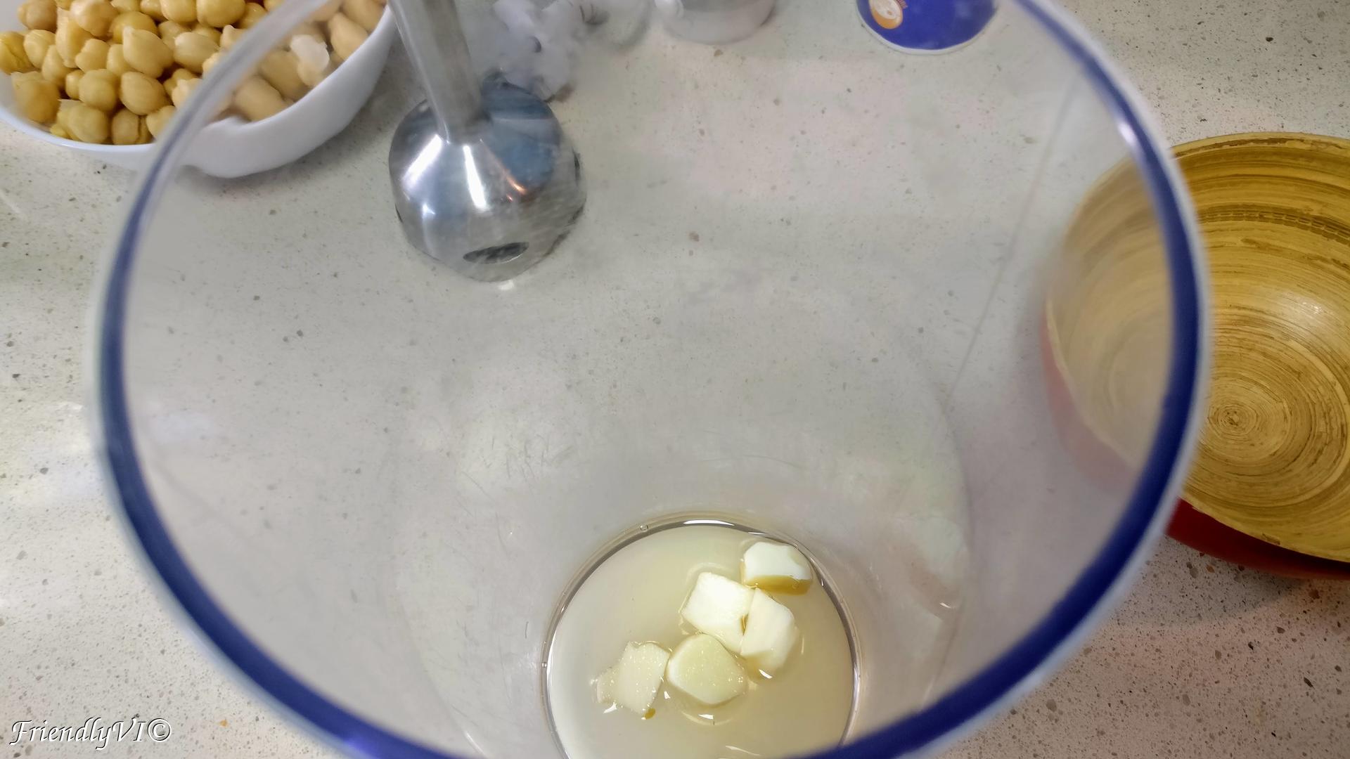 5. Blend it together with the reserved liquid, garlic and vinegar.