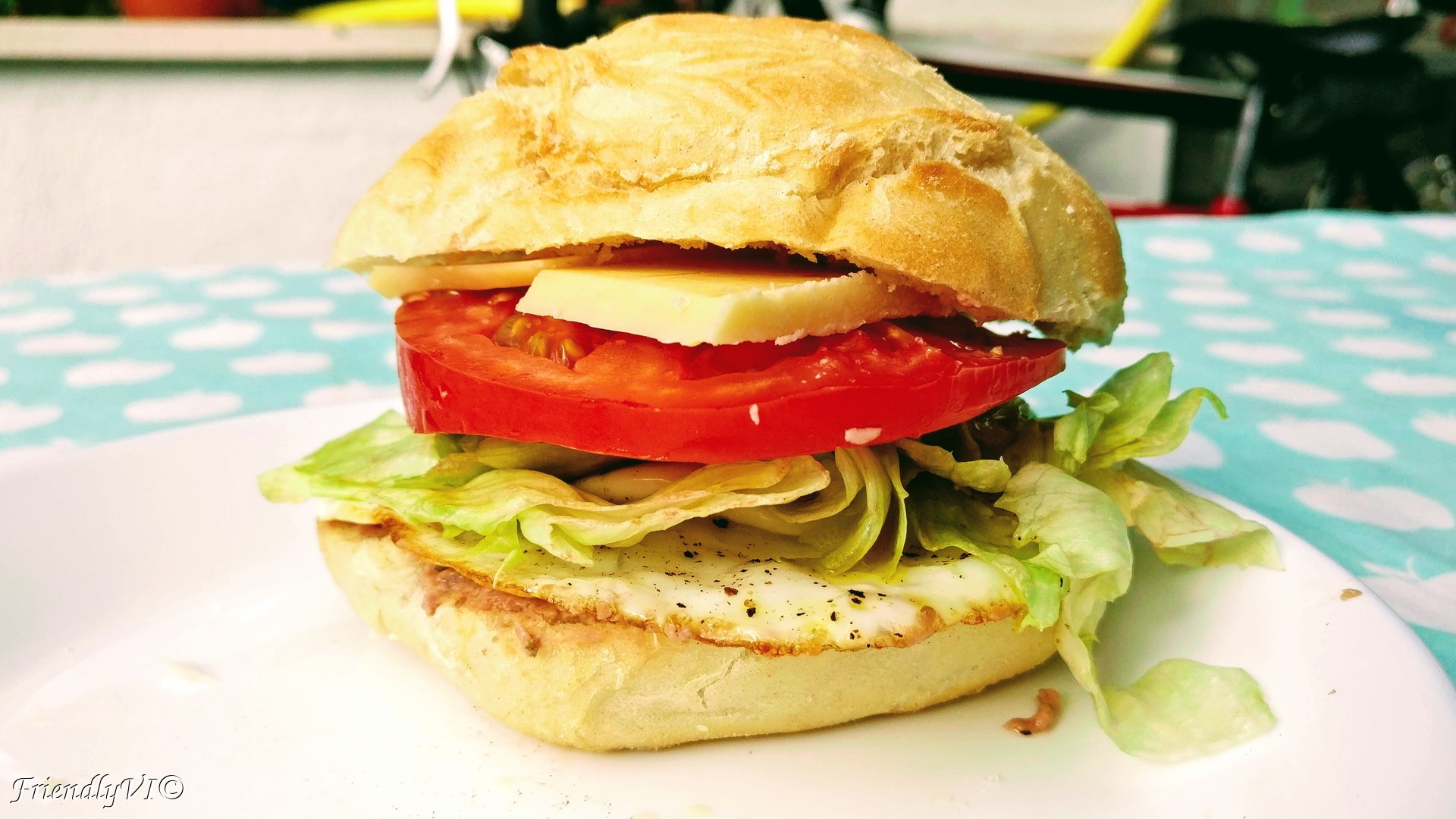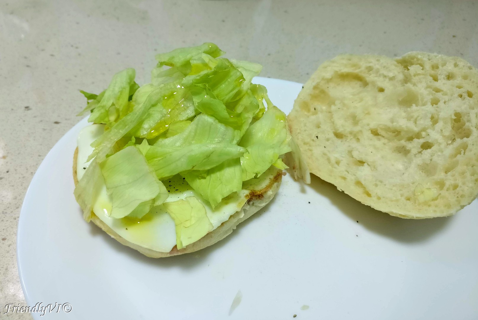 2. Fry the egg and place it on the bun, season with salt and pepper.