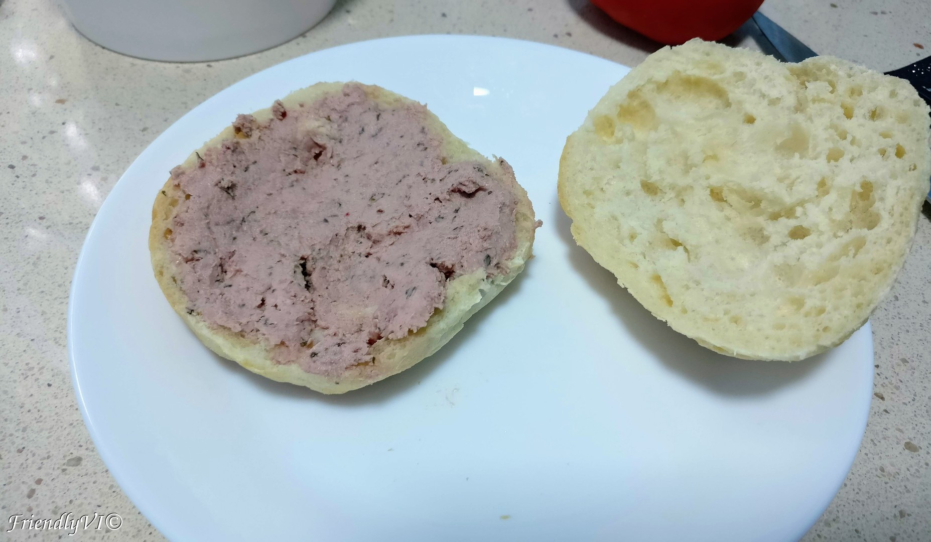 1. Cut the bun in half and spread the pate on the bottom part.
