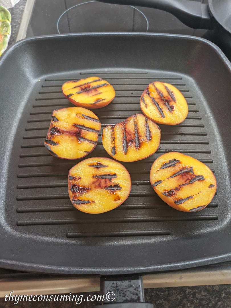 I miss summer so I decided to document a grilled peaches salad that I made a while back inspired by What’s eating Dan? It is a very nice and creamy salad, fresh and fruity, perfect for a hot summer day.