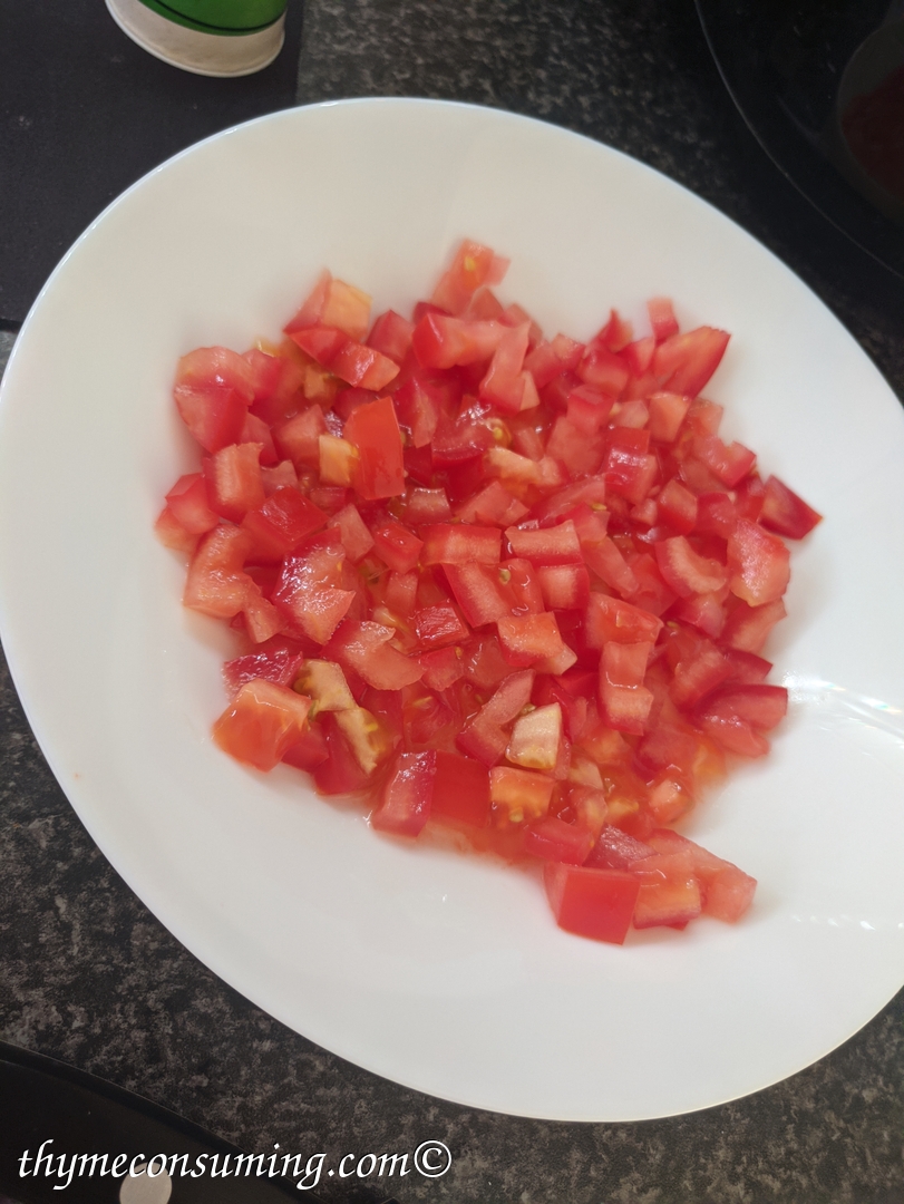 - In the meantime, chop one big tomatoe and salt it.
