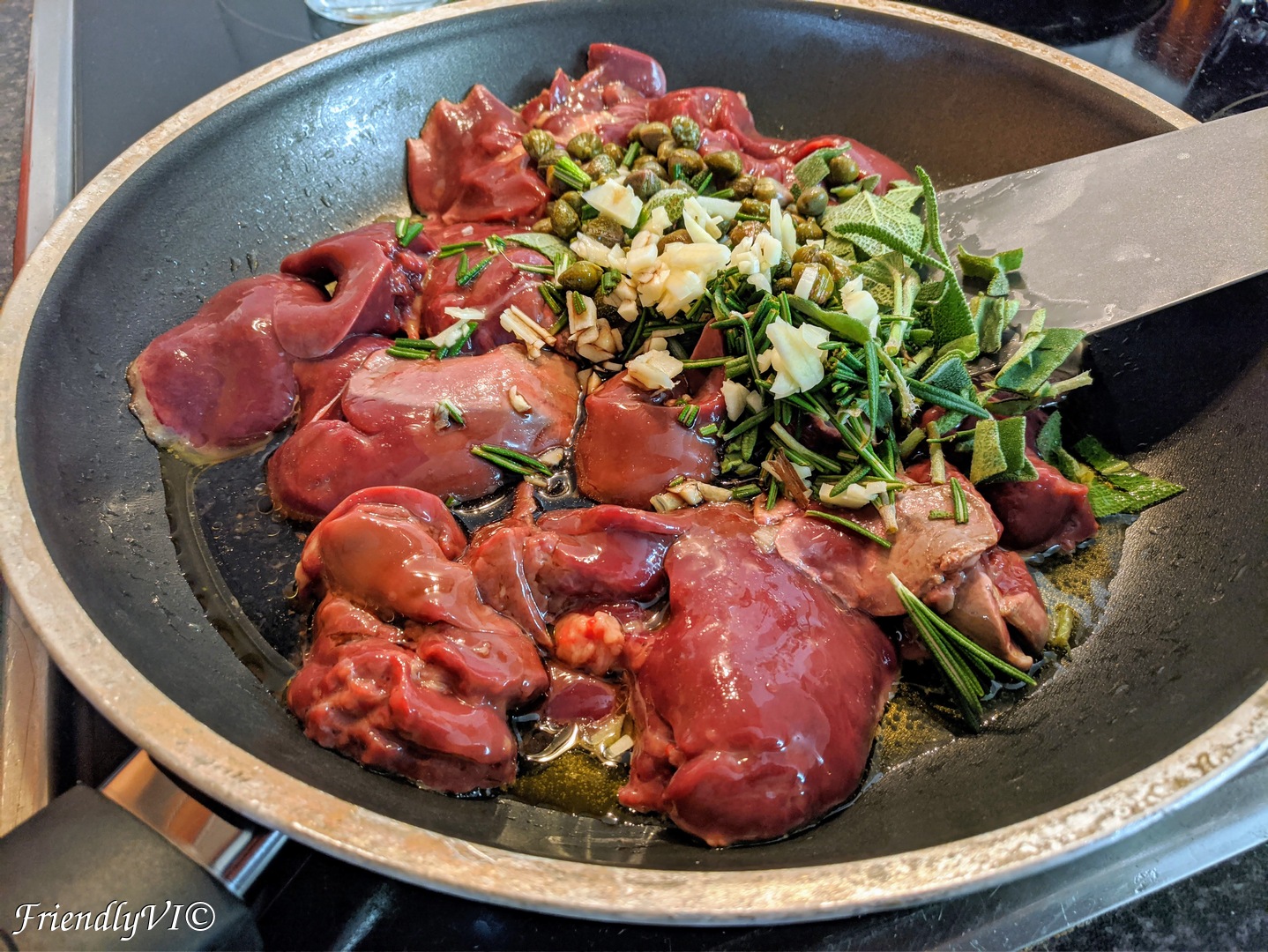I did not invent this recipe, it was shared with me. The combination of red wine, with liver, sage and rosemary is really good! Here’s how to make it: