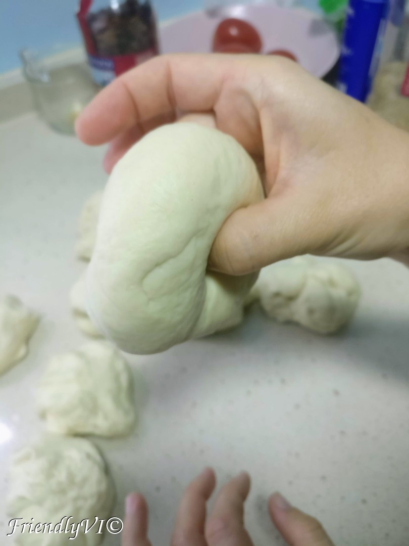 7. Make the dough into a roll, cut it in 9 pieces.