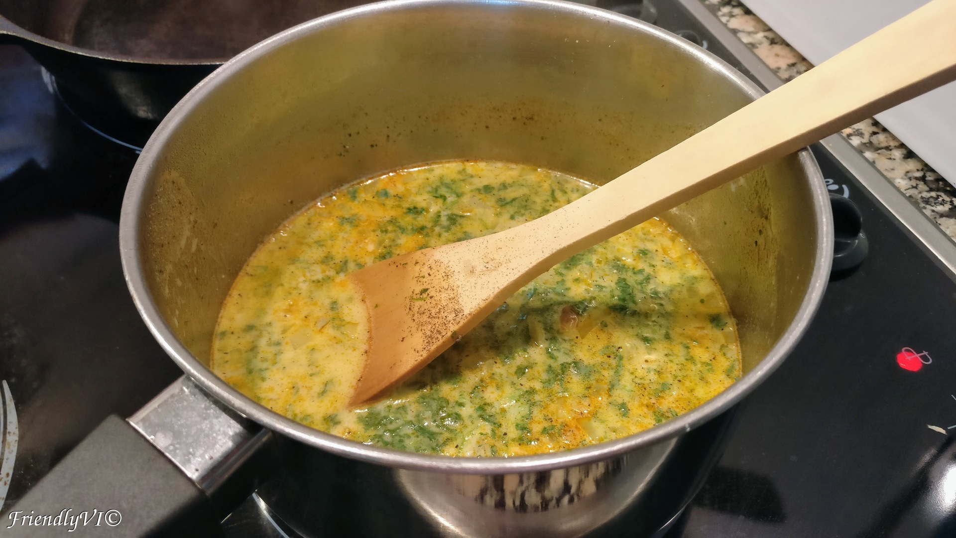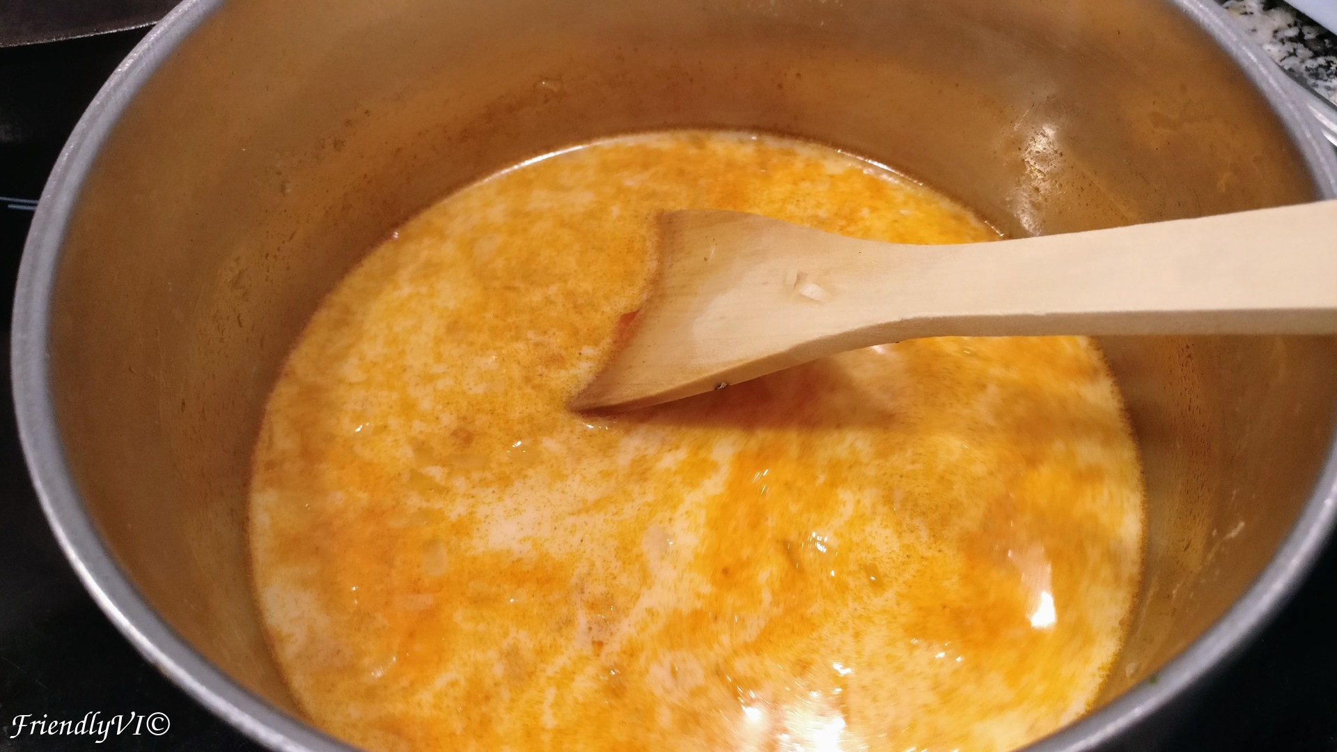 6. Add the paprika and immediately the milk.