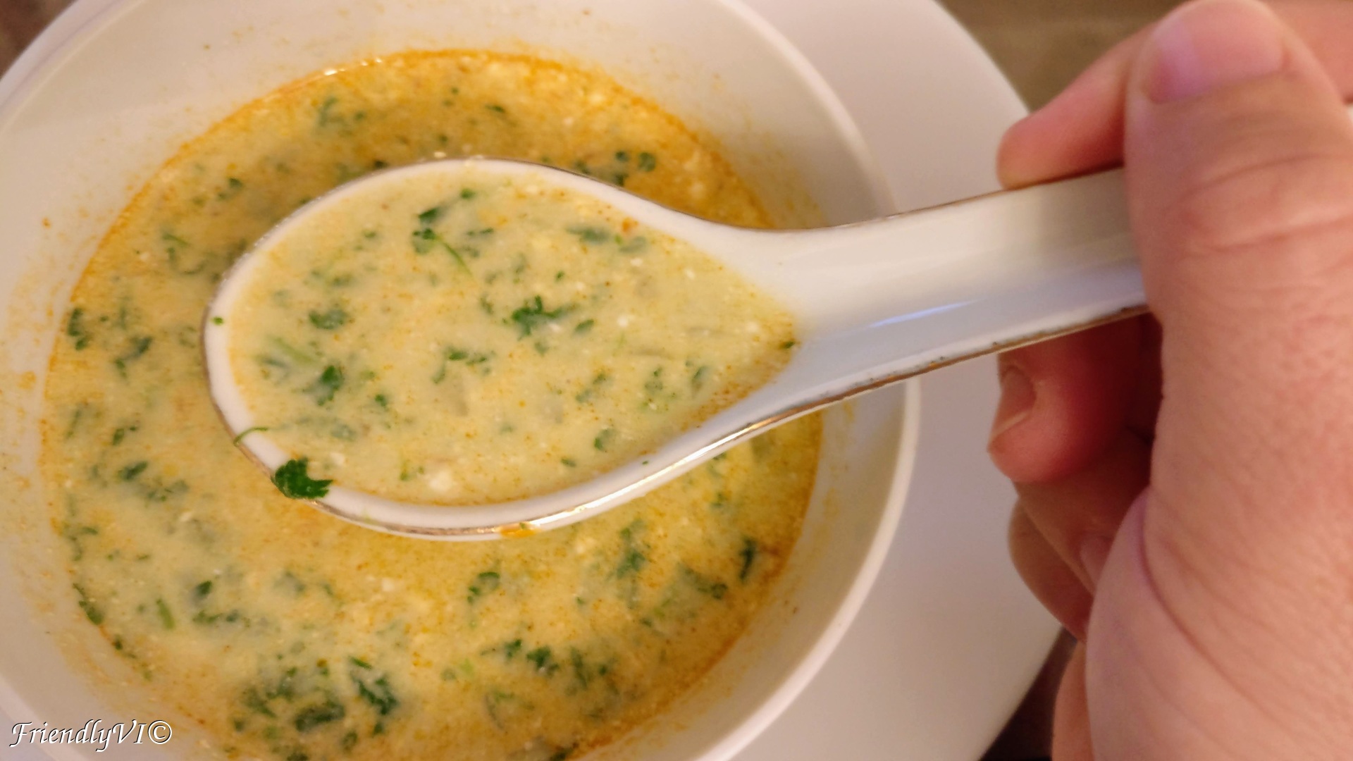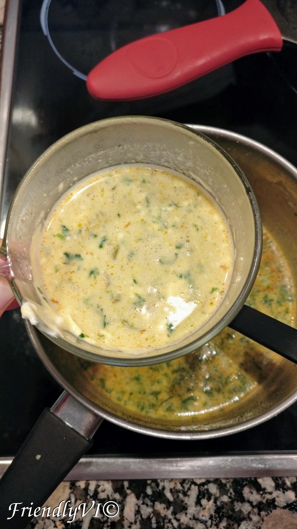 8. Mix the egg yolk with the sour cream and temper it with the soup and pour it in the pot.