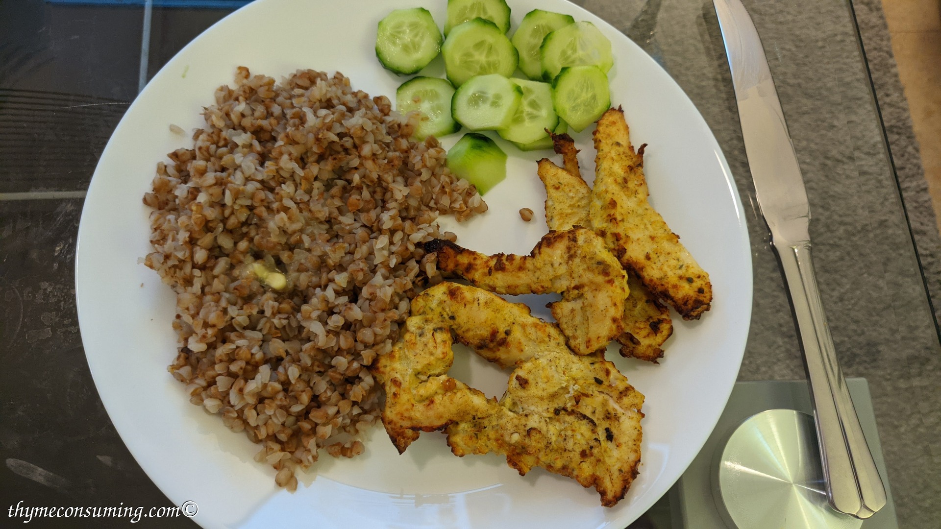 - Buckwheat with chicken tikka. I use my airfryer recipe for the chicken tikka: m