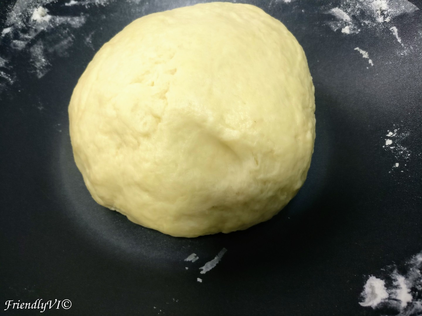 3. Add the activated yeast and the rest of lukewarm milk in the rest of the mixture and knead until the texture becomes elastic (~15 min):