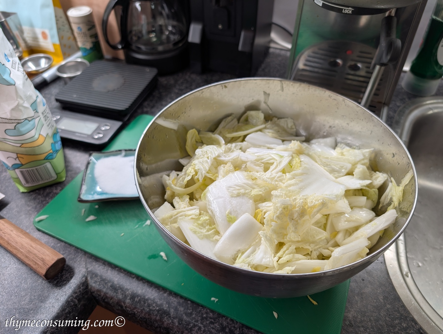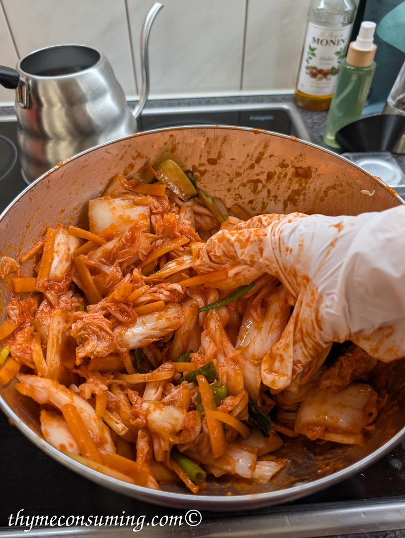 - Mix it all with the Chinese cabbage, making sure it is all well coated.