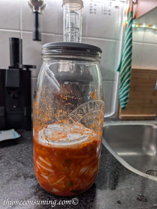 - Place it in a pickling jar and press down on it making sure there are no air bubbles.
