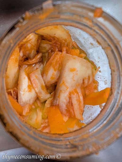 Since one cabbage makes for about 3 jars of kimchi, I invented more ways to add kimchi into my normal routine. Here are my two favorite ways to add it to food:
