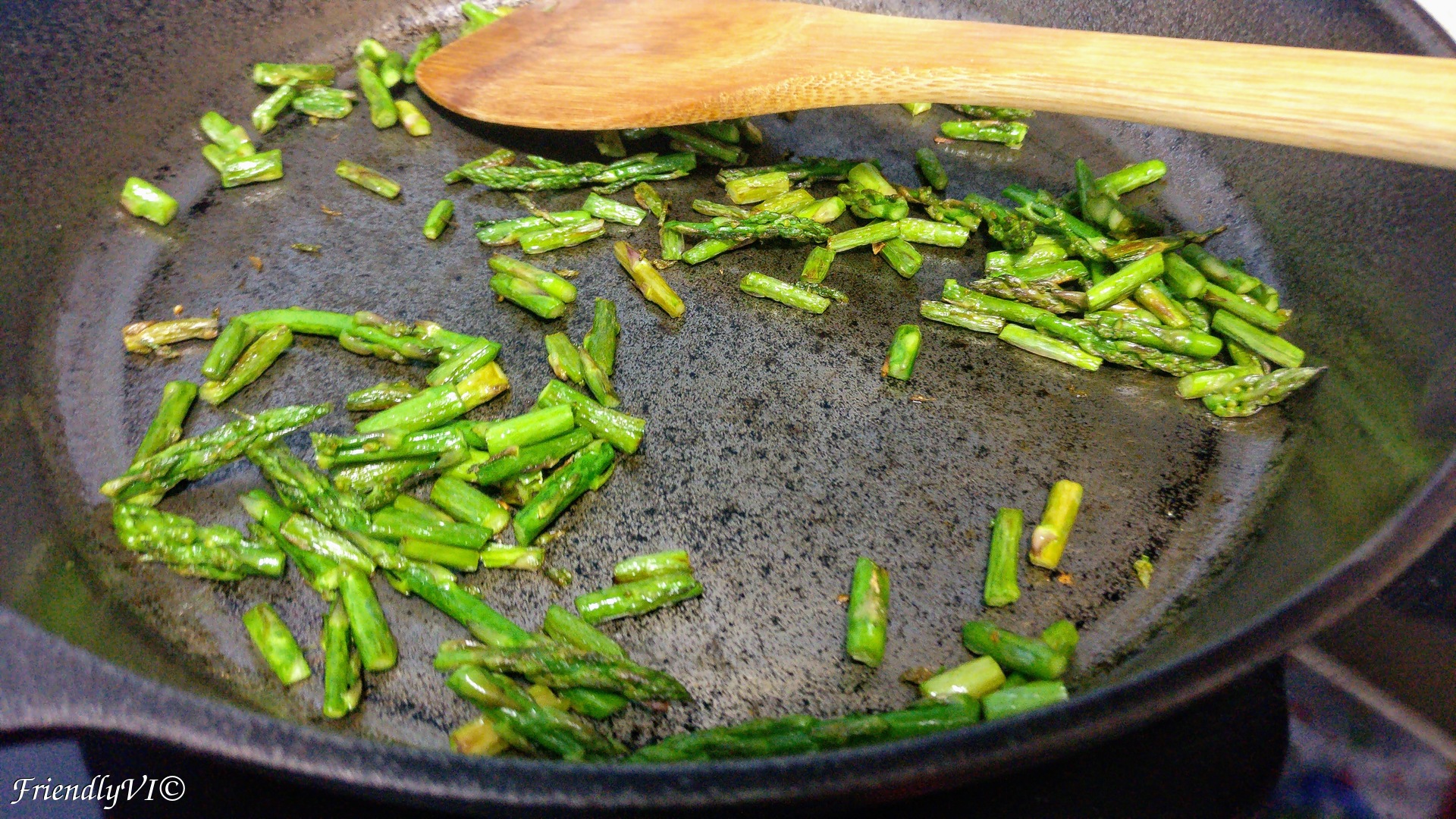- Fry the asparagus in a bit of olive oil. Putting this ingredient is fully optional.