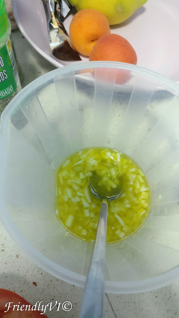 - Prepare the dressing: flake the garlic and mix in the olive oil and squeeze on full lemon + add some salt.