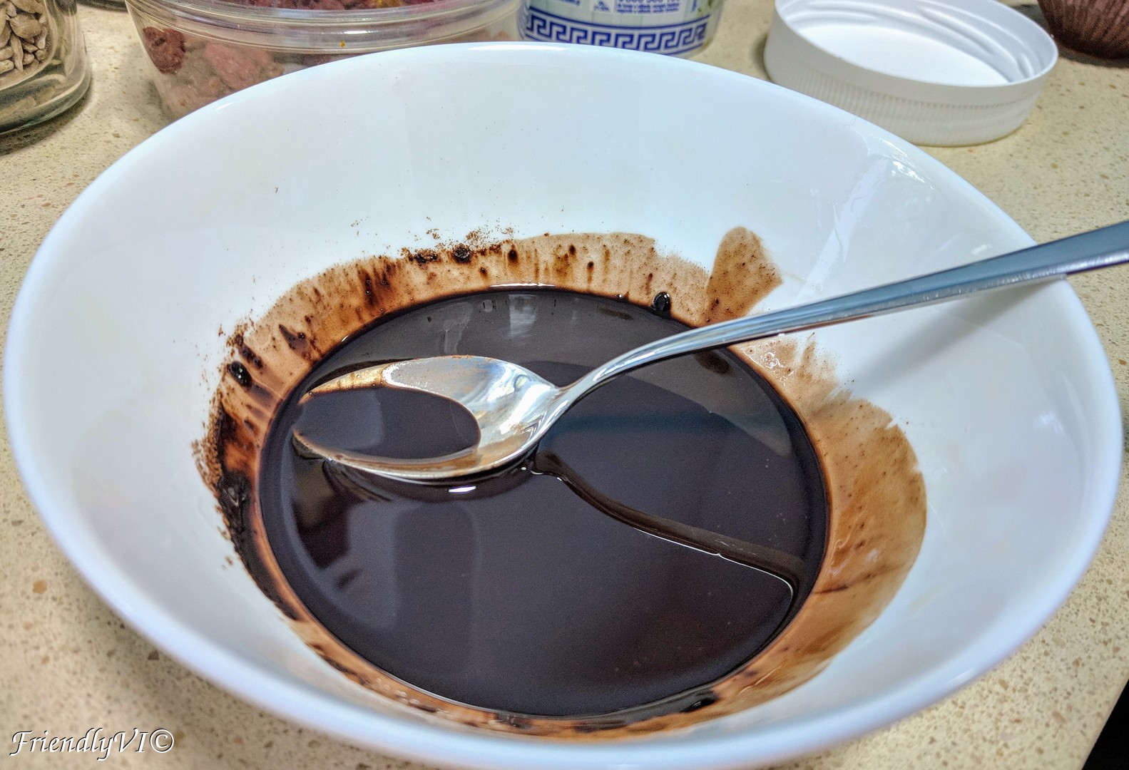 - In a small bowl mix the melted coconut oil with the cocoa powder.