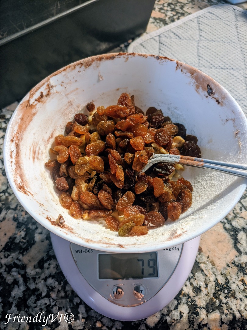 - 80 to 100 g of dried fruits and nuts (I use raisins and walnuts)