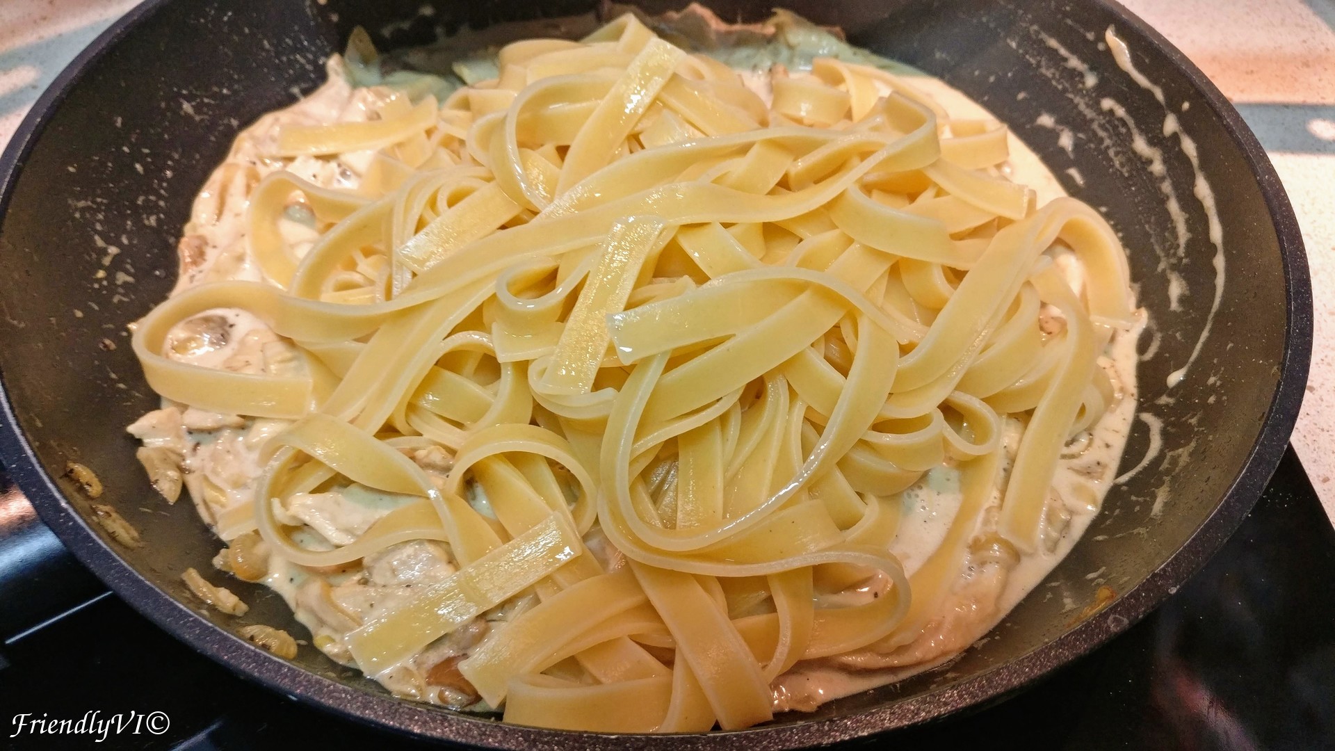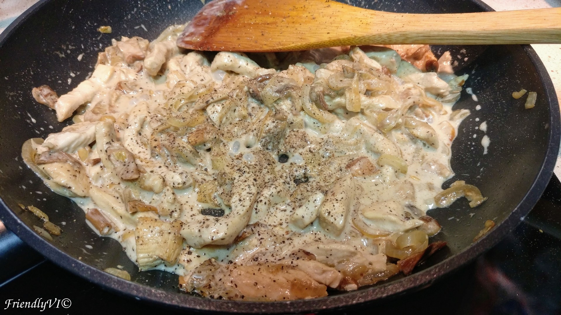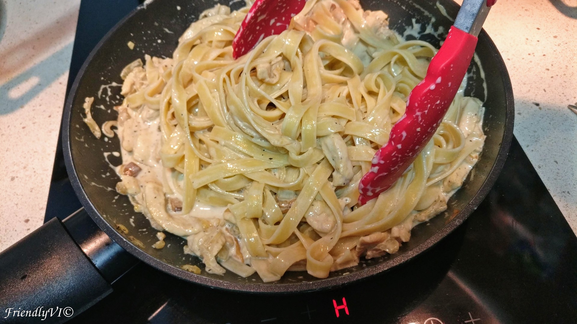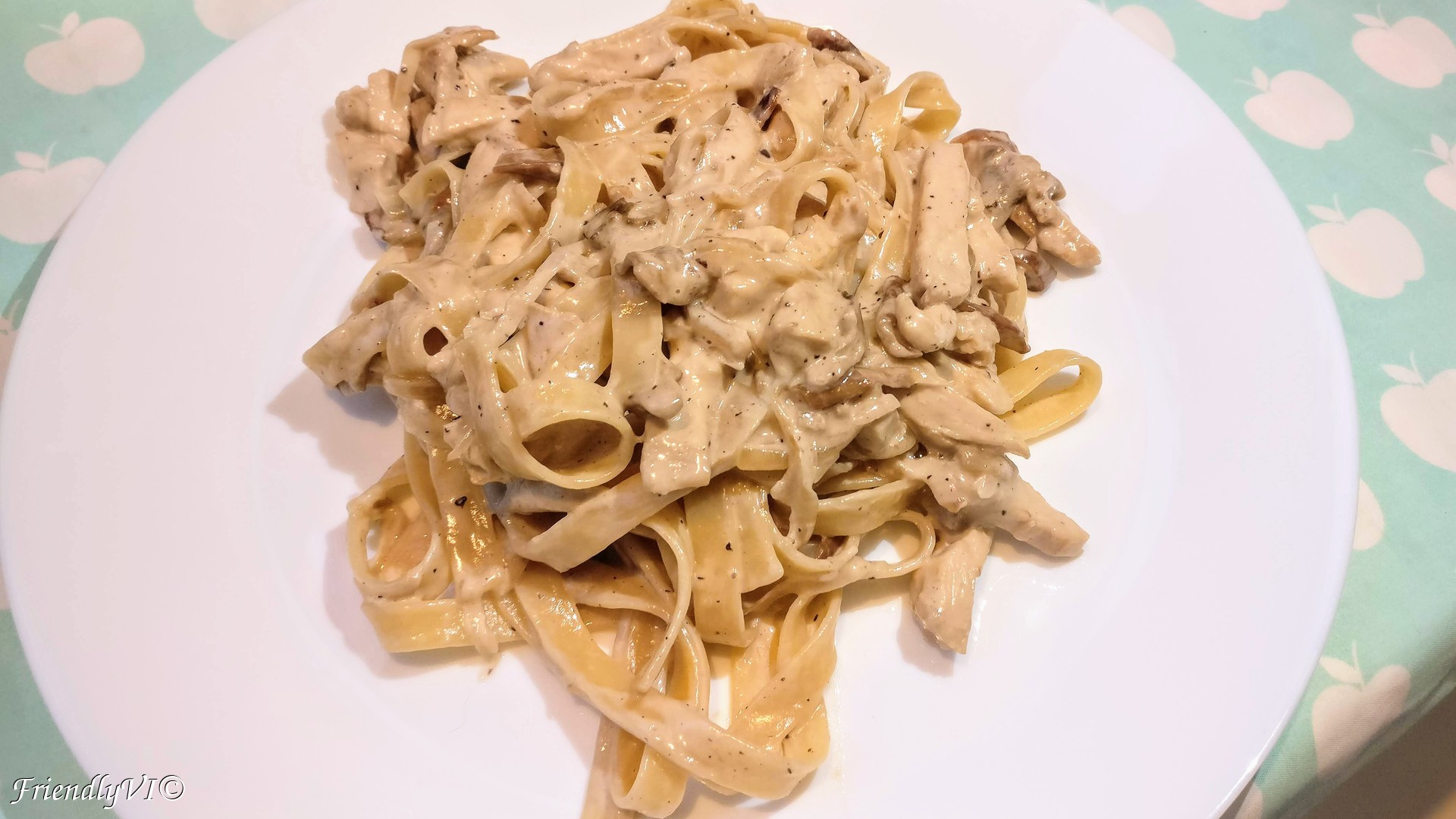 As boring as pasta with chicken and mushrooms sounds, as much it is going to rock your world! 😀